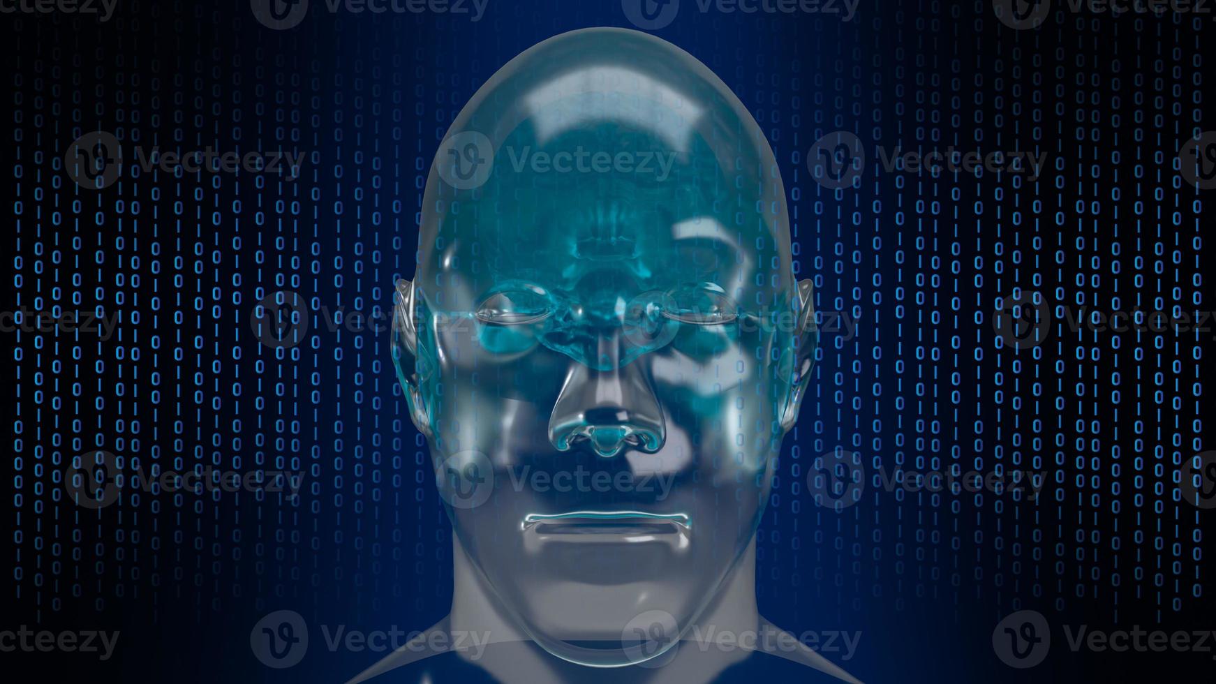 The robotic human head with graphic element face represent artificial intelligence and machine learning concept 3d rendering Pro Photo