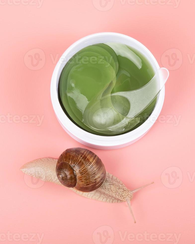 snail and container with cosmetic patches for the eyes with the addition of mucin Pro Photo