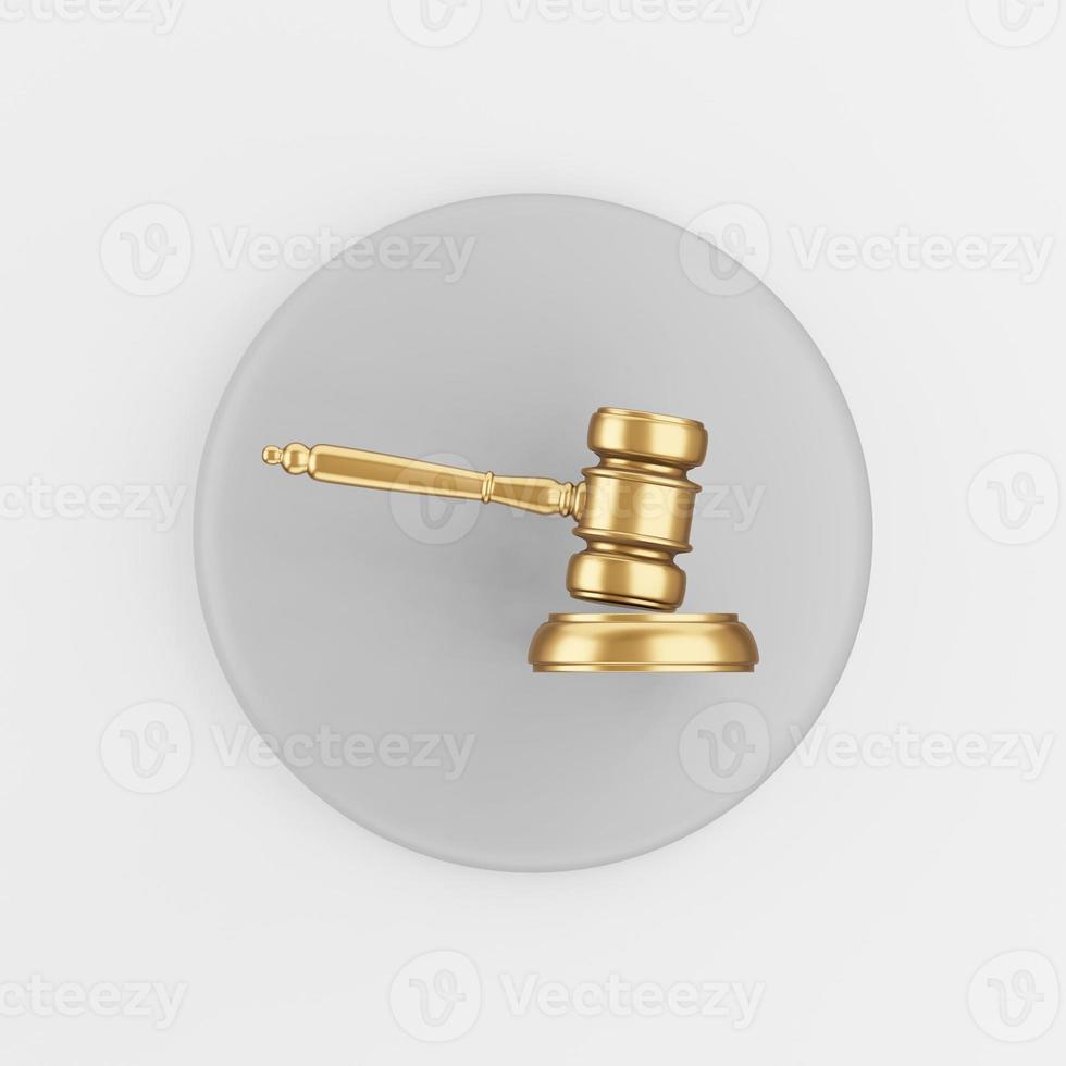 Gold gavel judge icon. 3d rendering round gray key button, interface ui ux element. Pro Photo