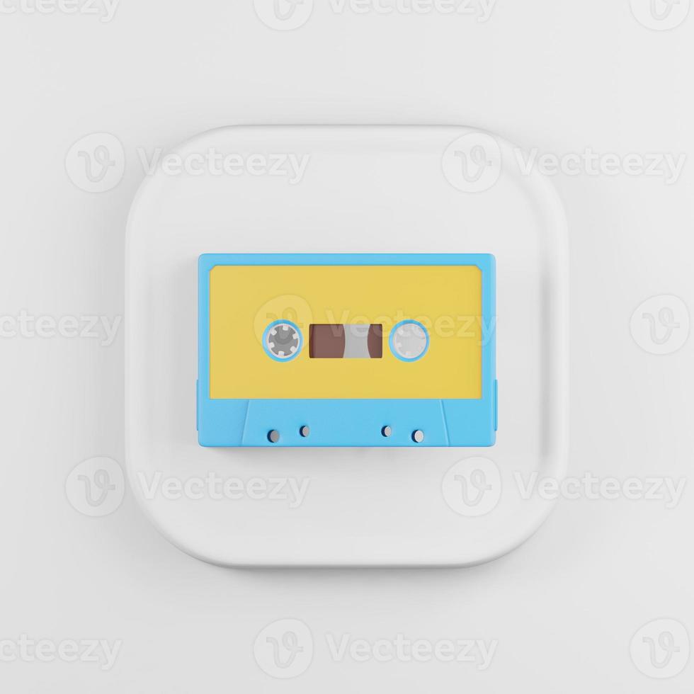 Yellow-blue cassette icon. 3d rendering white square button key, interface ui ux element. Pro Photo