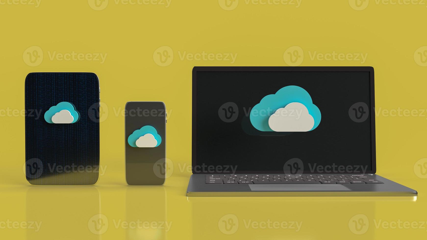 The cloud and smart phone or smart device for technology network content 3d rendering Pro Photo