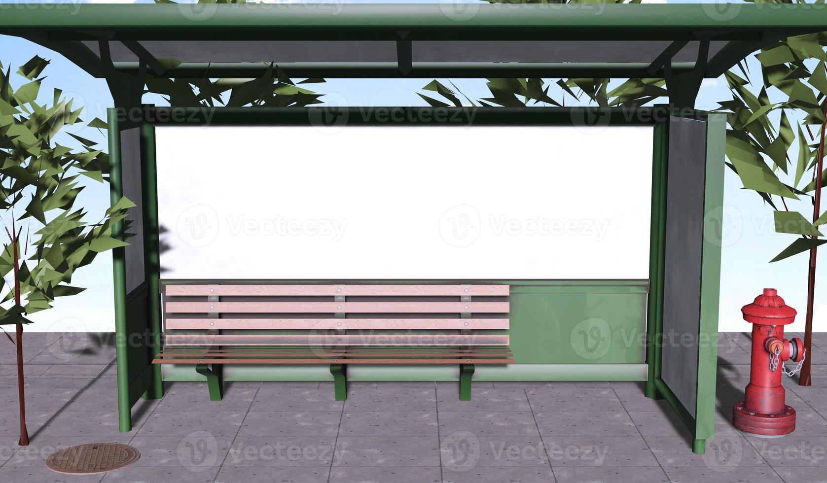 3D illustration front view bus stop and front blankboard for copy space , message, information, text , advertisement , announcement and other , 3D rendering background Pro Photo