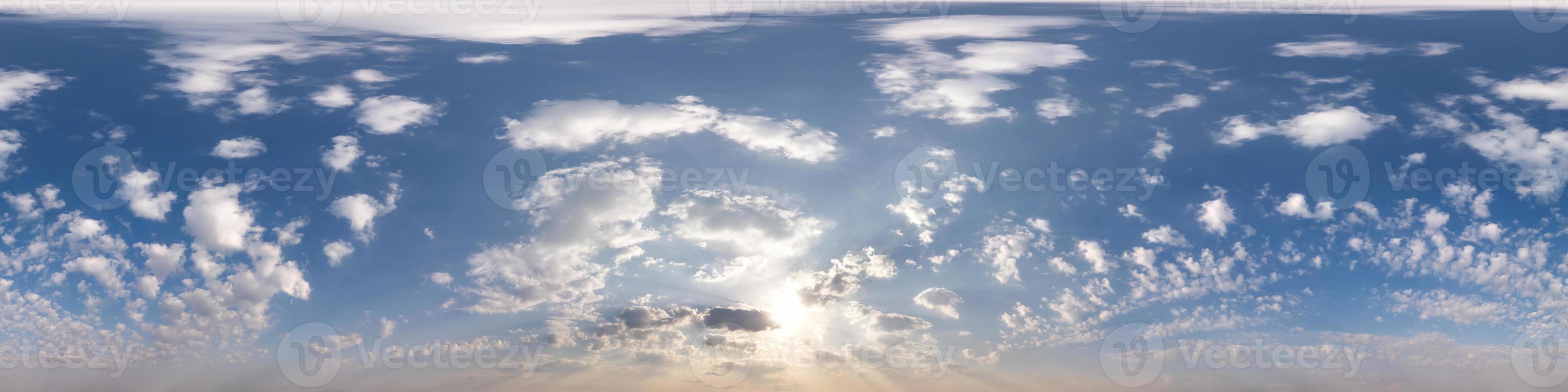 clear blue sky with white beautiful clouds. Seamless hdri panorama 360 degrees angle view with zenith for use in 3d graphics or game development as sky dome or edit drone shot Pro Photo