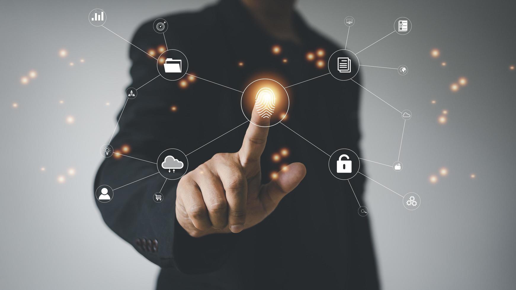 Technology fingerprint scan provides security. digital transformation change management,new technology big data and business process strategy, automate operation, customer service management. Pro Photo