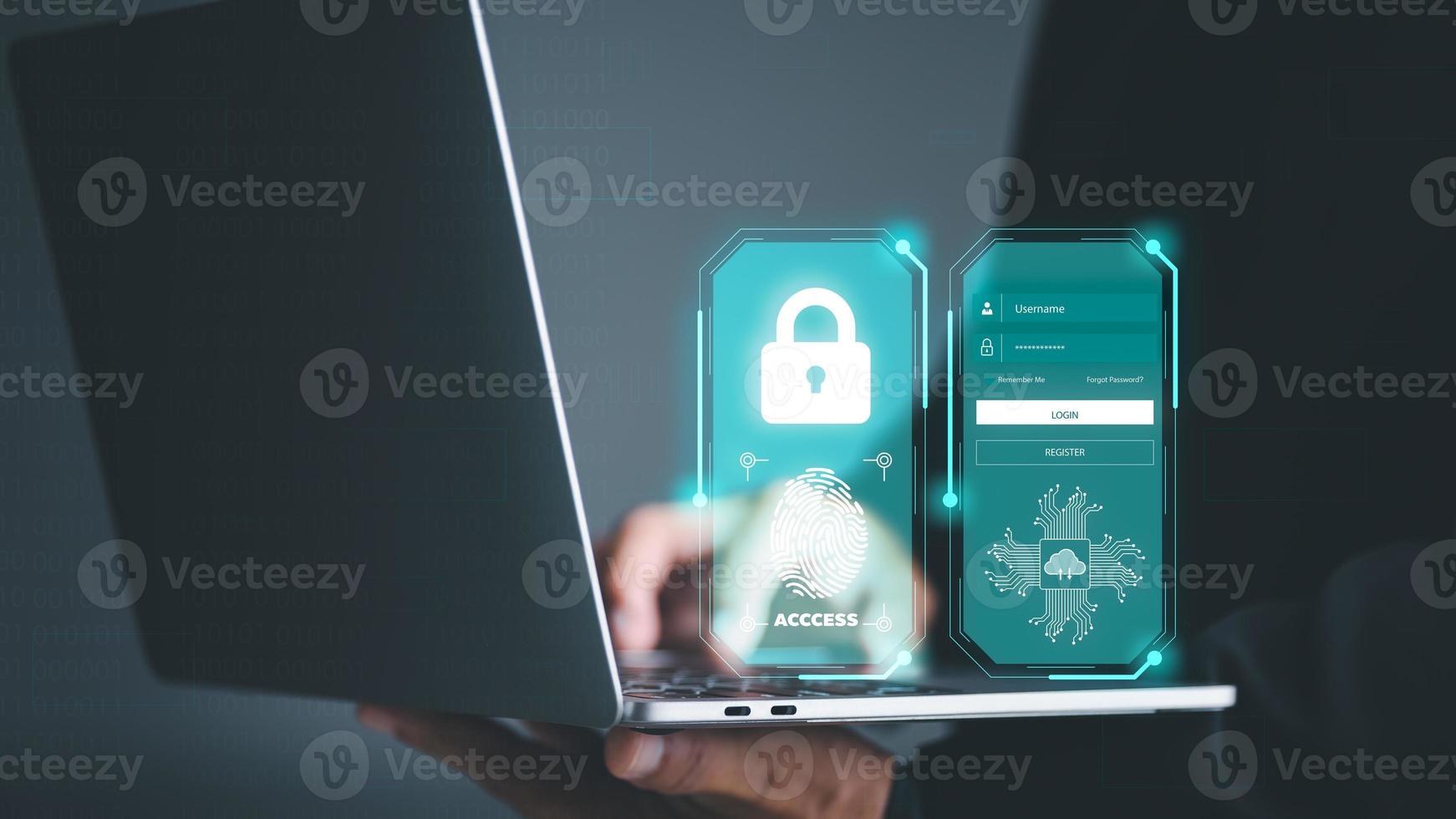 Businessmen enter the security system through a laptop. to prevent unauthorized access to privacy information By unlocking the password and verifying identity through the database. Pro Photo