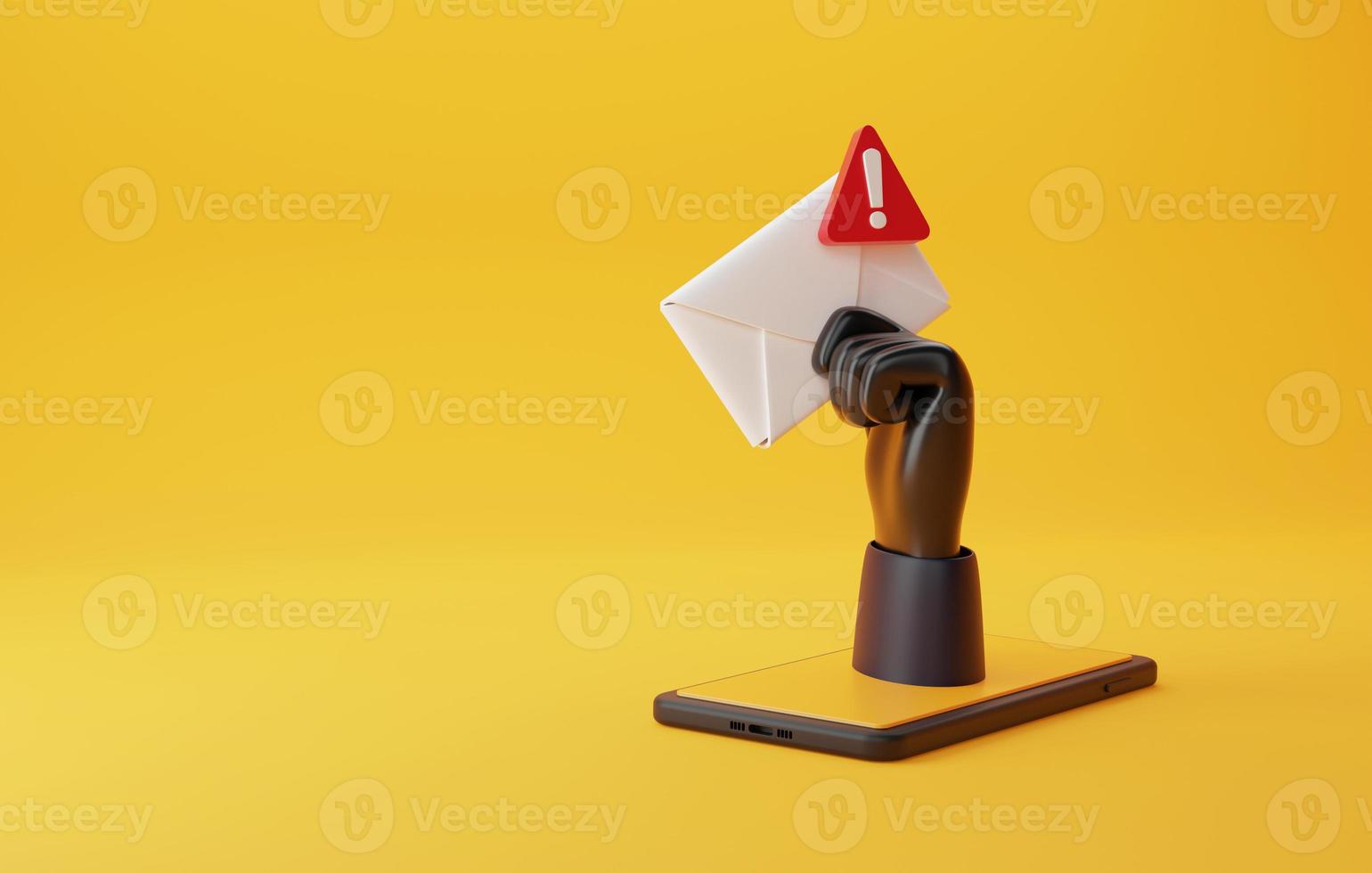Hacker's hand holding envelope with spam message icon on mobile. 3D rendering, 3D illustration Pro Photo