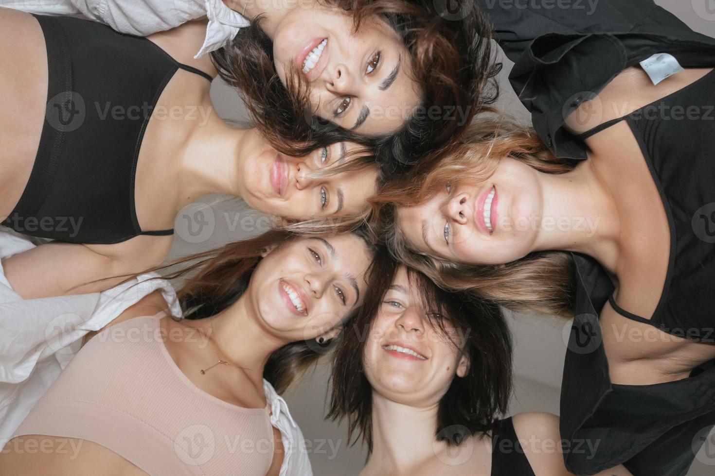 View from below. Diverse models around the camera Pro Photo
