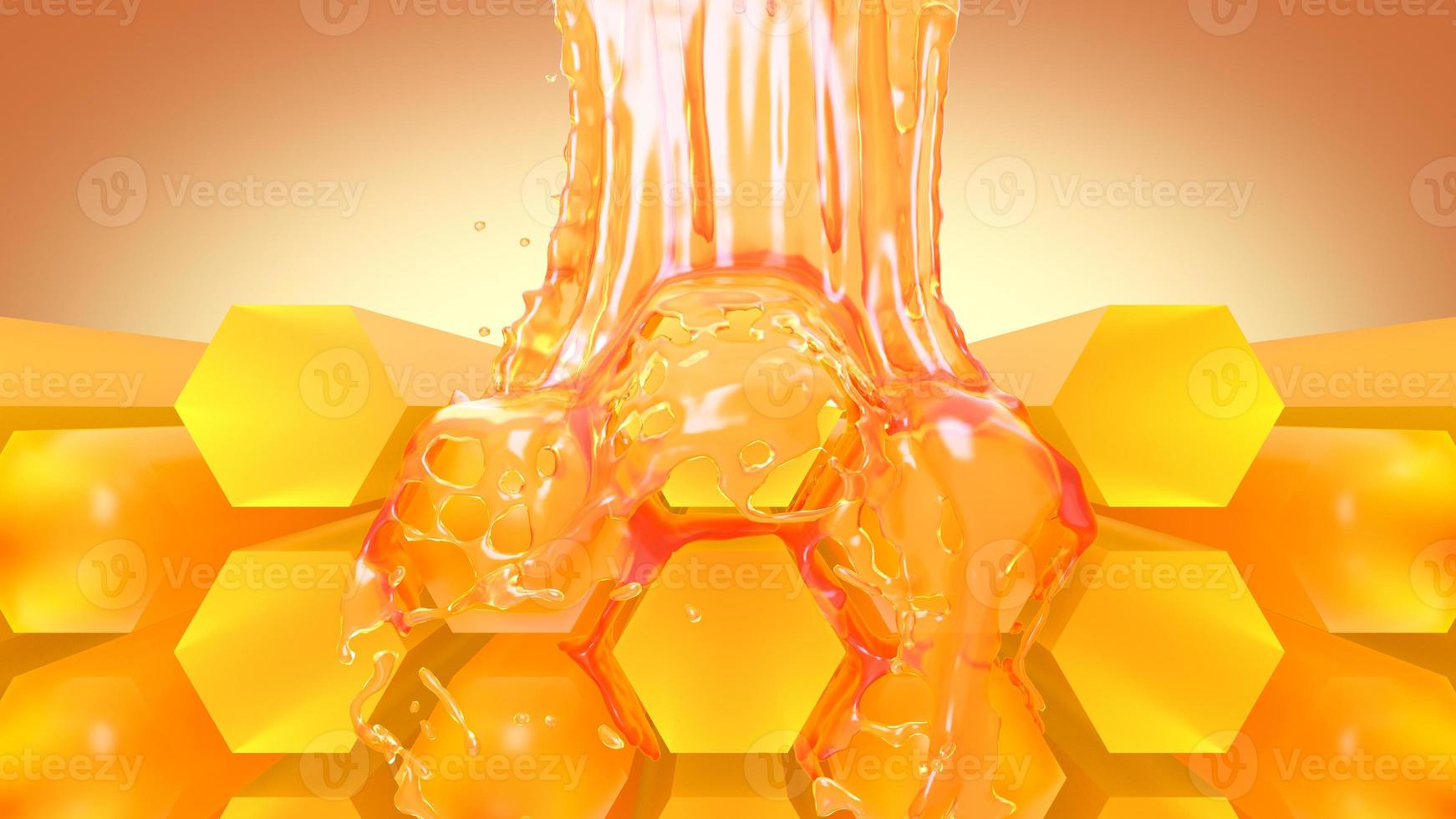 Pour honey on a hexagonal stick with clipping path, 3d rendering. Pro Photo