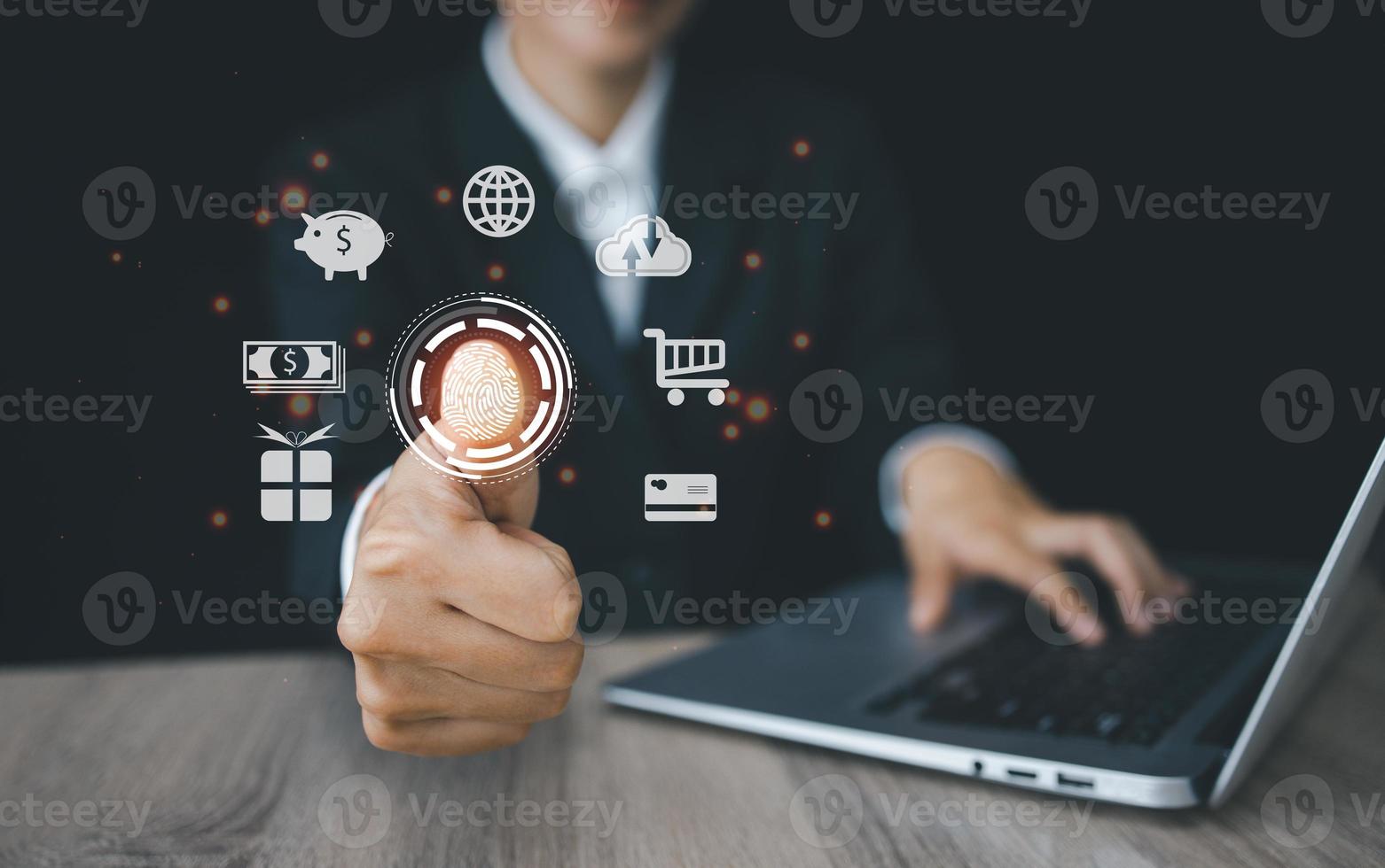 Fingerprint scan provides security access with biometrics identification. Business Technology Safety Internet Concept. processing of biometric for access personal data. Pro Photo