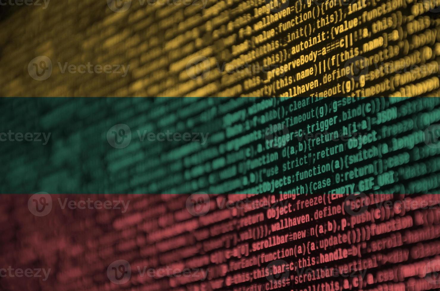 Lithuania flag is depicted on the screen with the program code. The concept of modern technology and site development Pro Photo