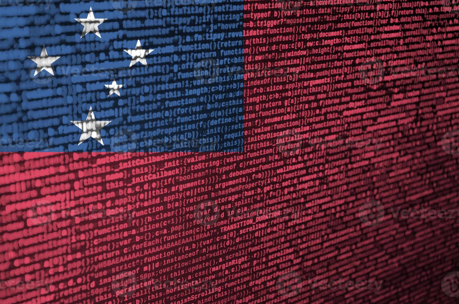 Samoa flag is depicted on the screen with the program code. The concept of modern technology and site development Pro Photo