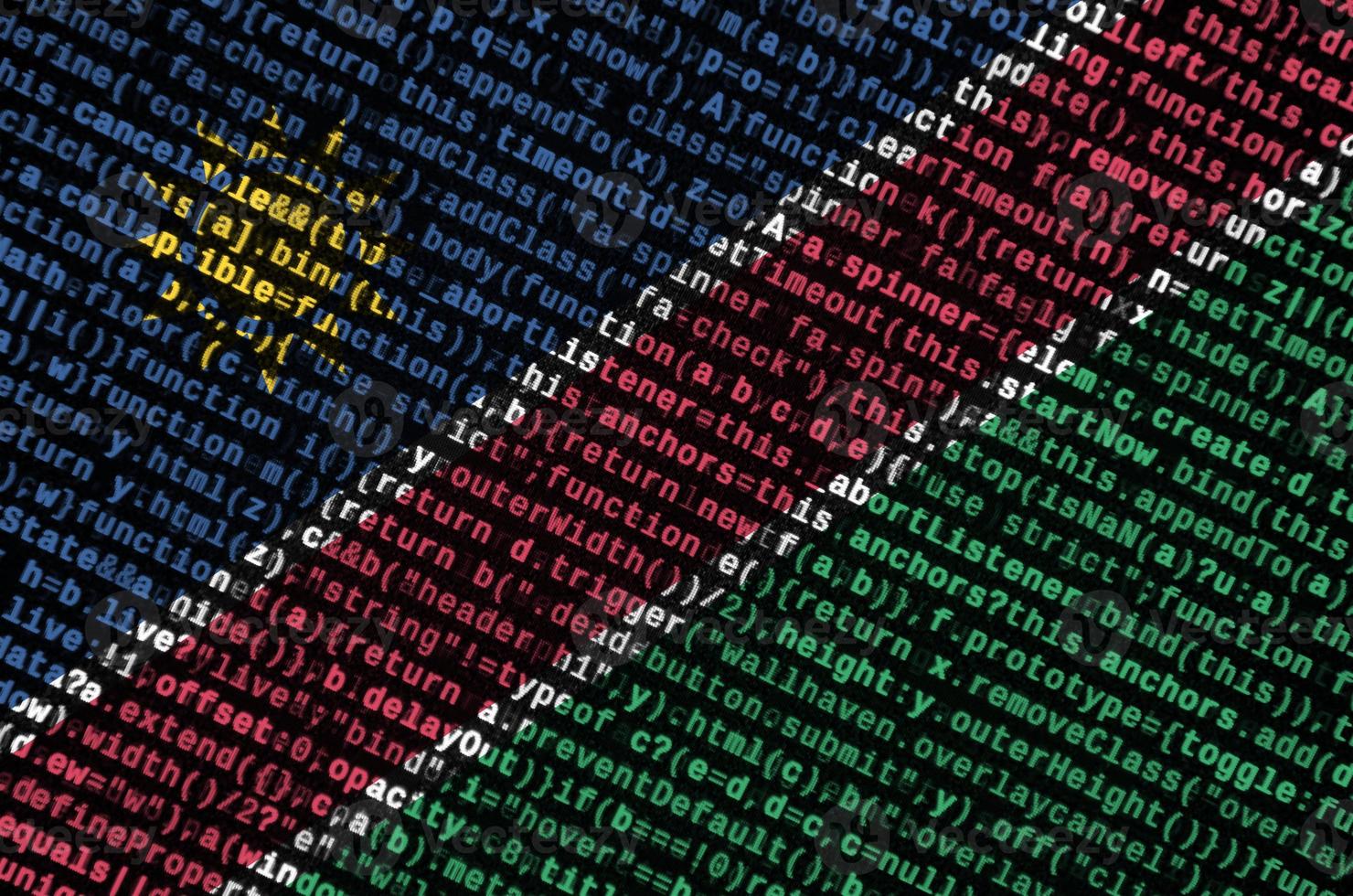 Namibia flag is depicted on the screen with the program code. The concept of modern technology and site development Pro Photo