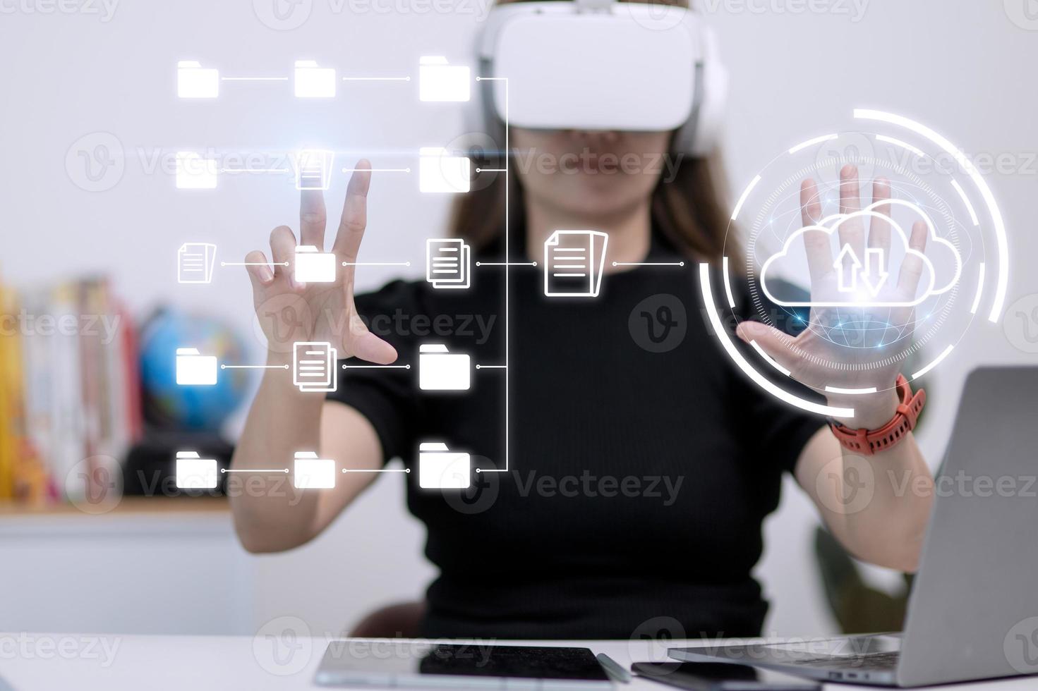 Document in folder to manage a hybrid cloud system and download or upload data to cloud computing. document management concept. Pro Photo