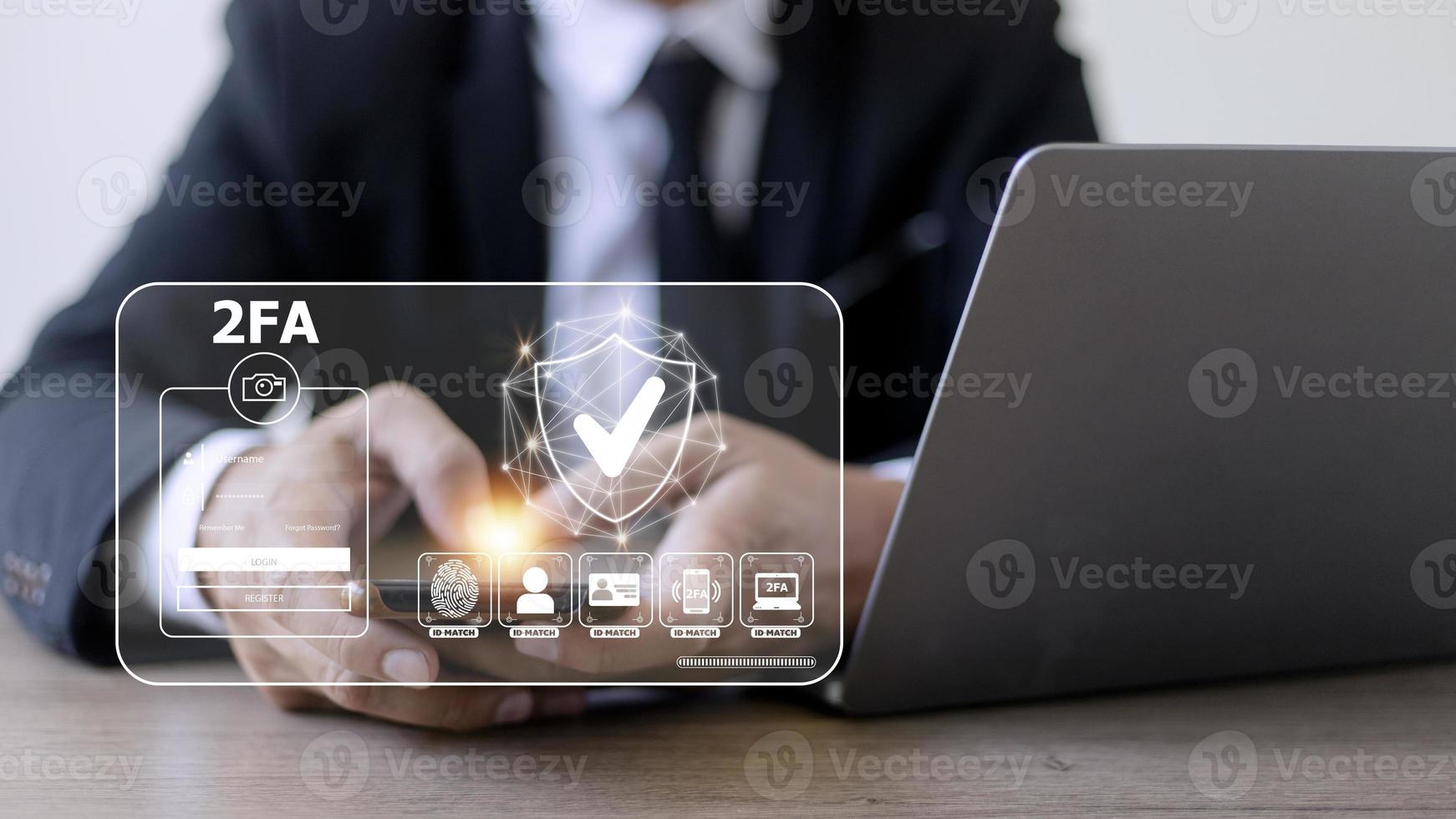 2FA increases the security of your account, Two-Factor Authentication laptop screen displaying a 2fa concept, Privacy protect data and cybersecurity. Pro Photo