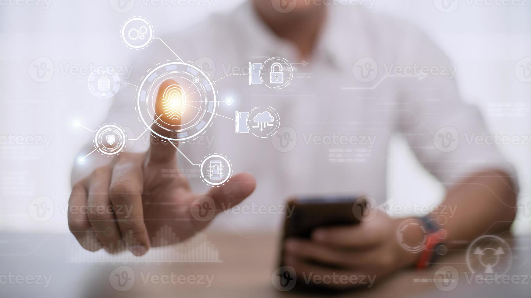 Technology fingerprint scan provides security. digital transformation change management,new technology big data and business process strategy, automate operation, customer service management. Pro Photo