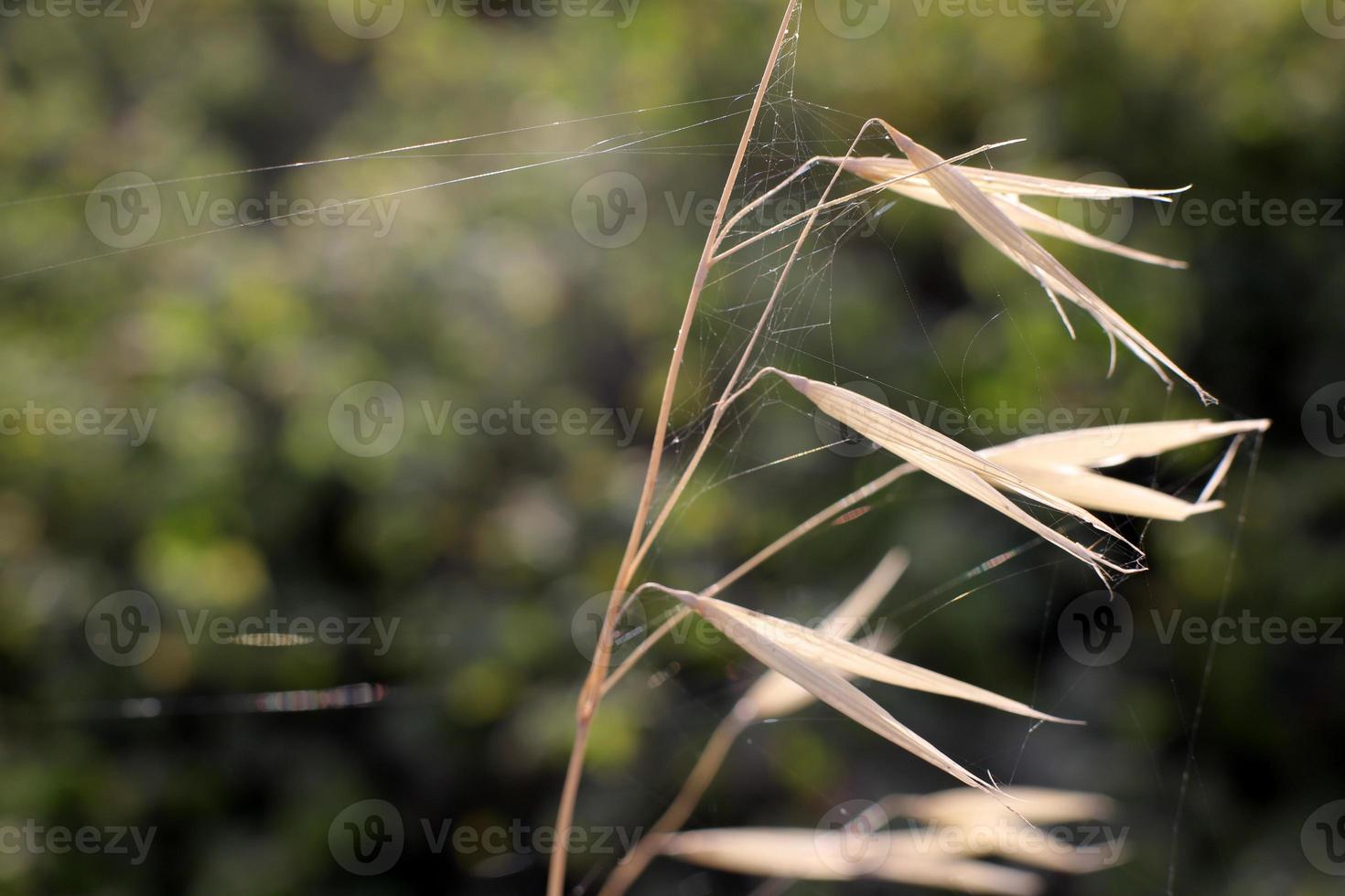On the branches and leaves of trees spider webs of thin threads. Pro Photo
