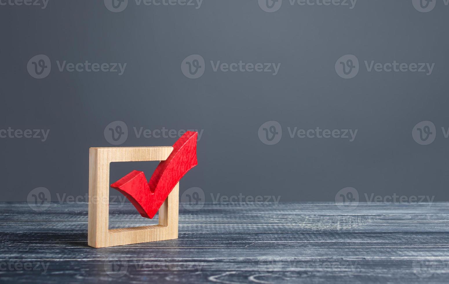 Red voting tick. Checkbox. Democratic elections, referendum. The right to choose, change of power. Checklist for verification and self-discipline. Necessary quality criteria, skills, approval symbol Pro Photo
