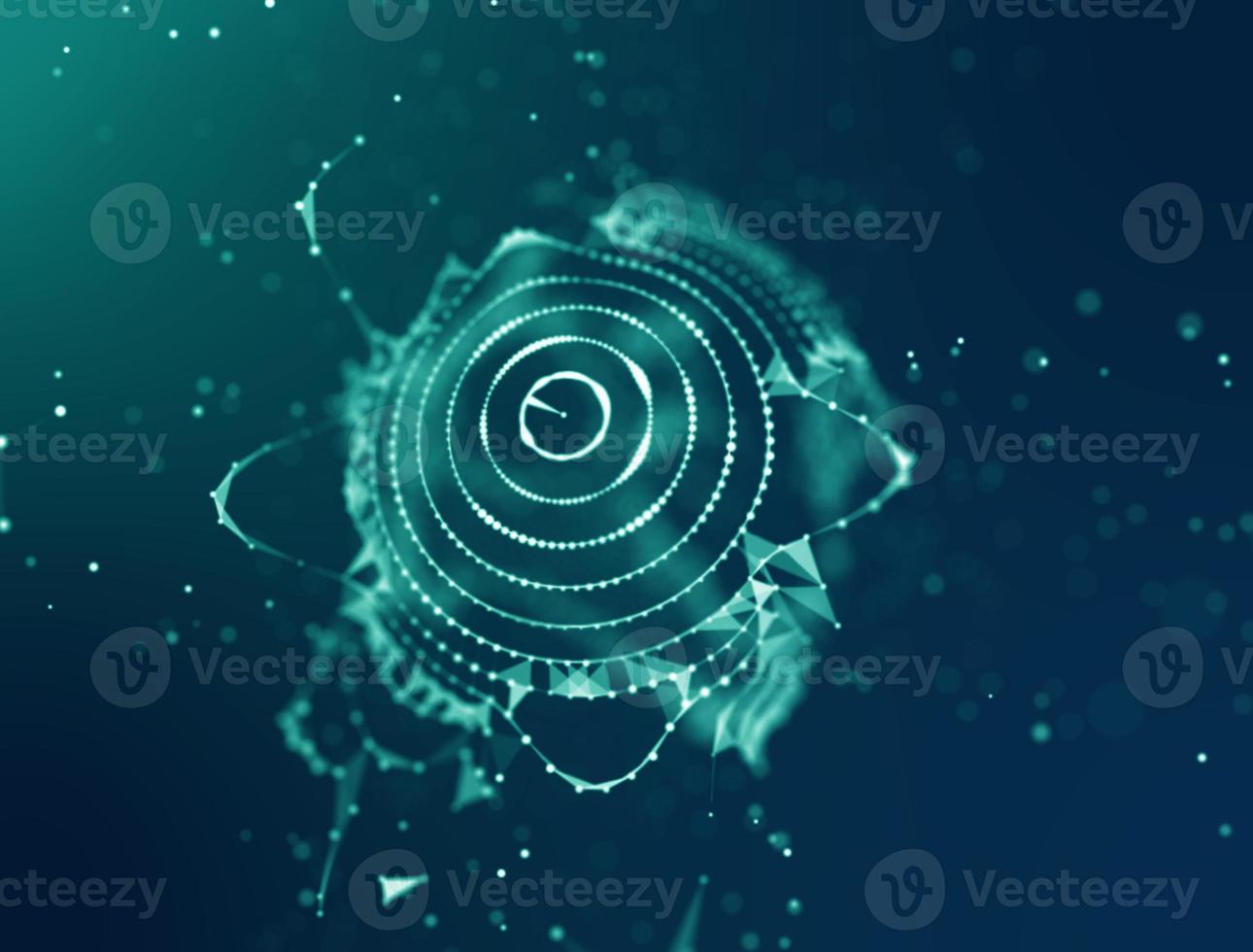Abstract blue 3d Illuminated distorted Mesh Sphere. Elegant Abstract Destroyed Sphere. Big data visualization. Pro Photo