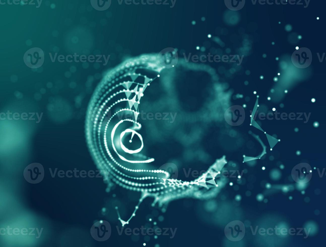 Abstract blue 3d Illuminated distorted Mesh Sphere. Elegant Abstract Destroyed Sphere. Big data visualization. Pro Photo