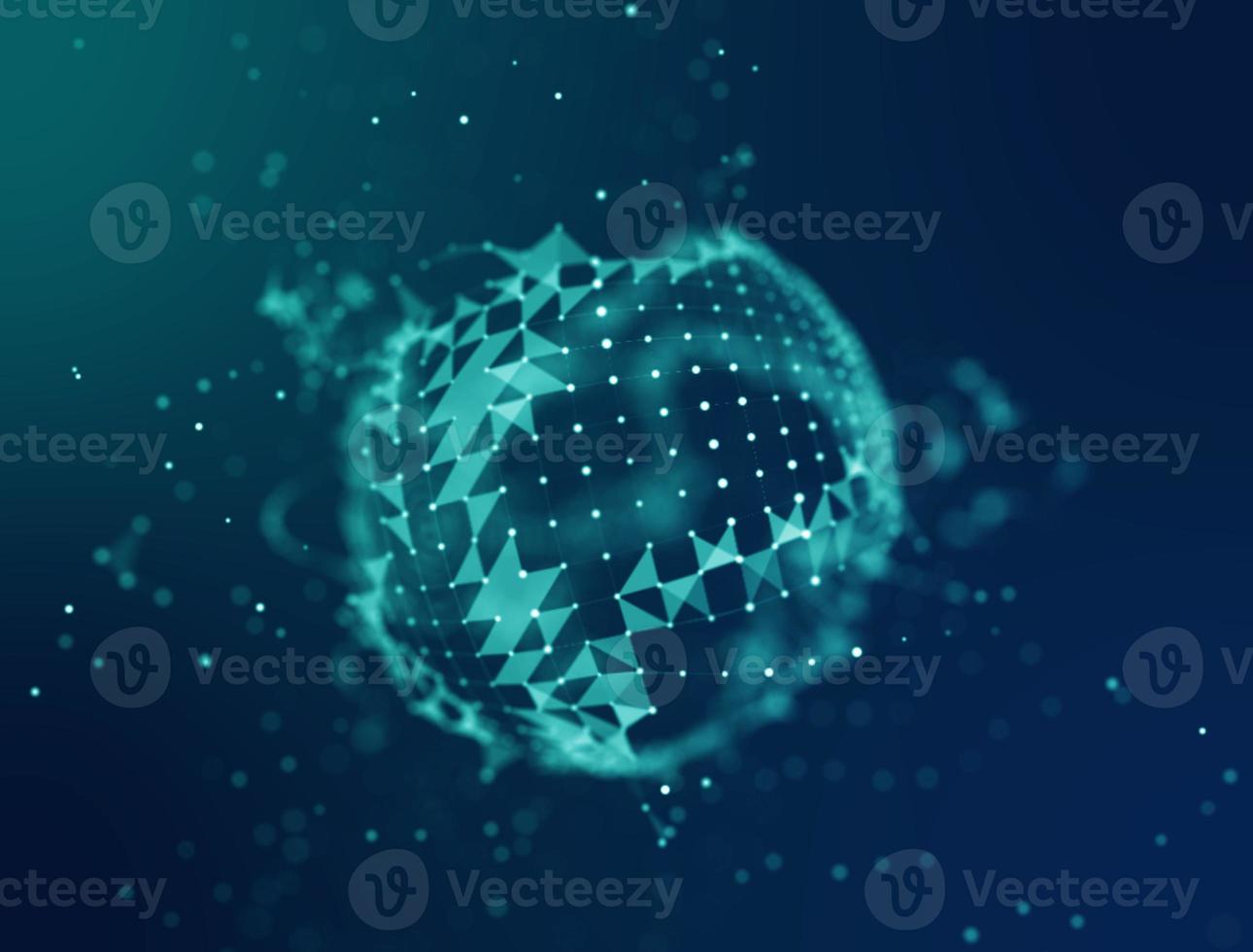 Abstract blue 3d Illuminated distorted Mesh Sphere. Elegant Abstract Destroyed Sphere. Big data visualization. Pro Photo