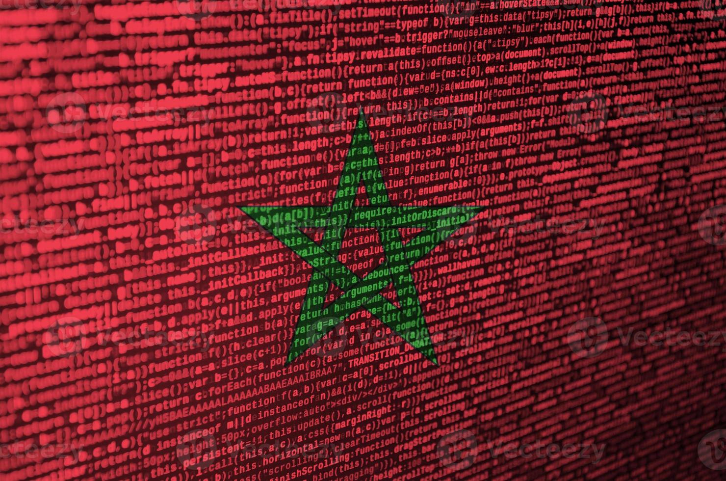Morocco flag is depicted on the screen with the program code. The concept of modern technology and site development Pro Photo