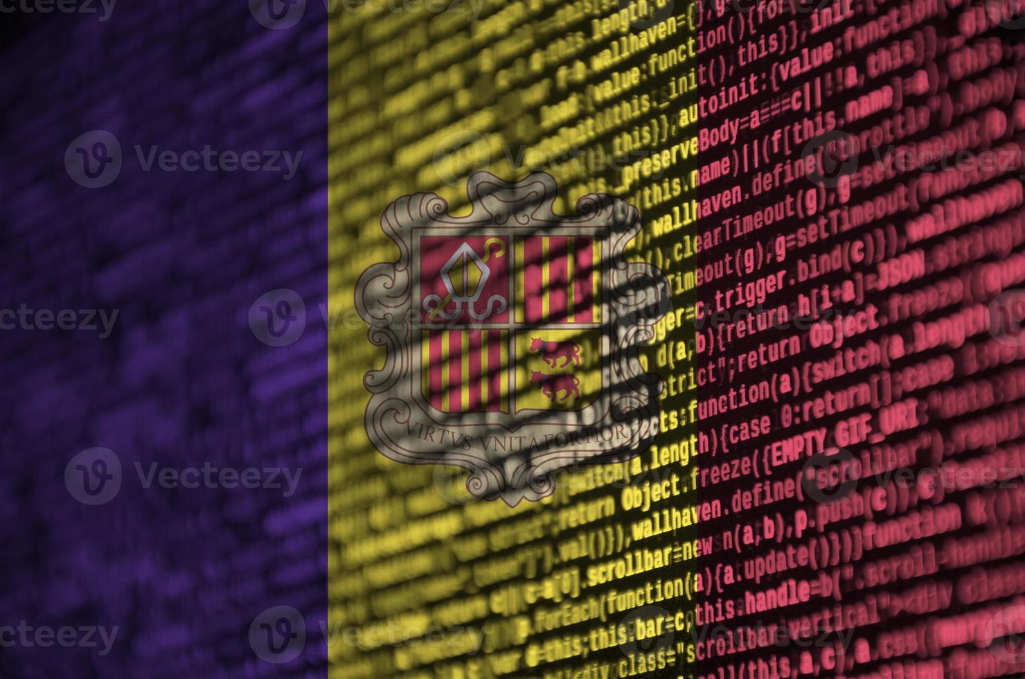 Andorra flag is depicted on the screen with the program code. The concept of modern technology and site development Pro Photo