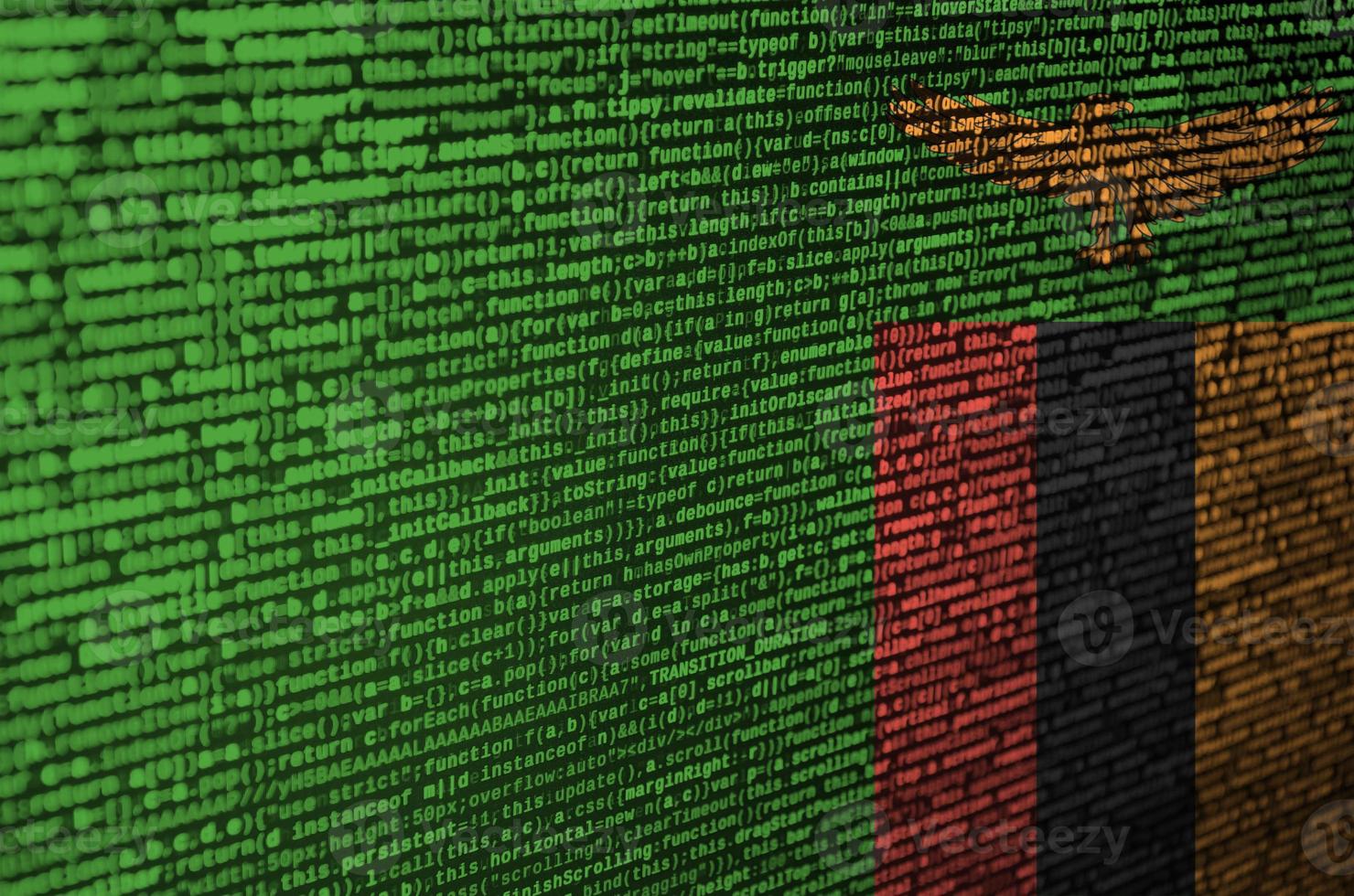 Zambia flag is depicted on the screen with the program code. The concept of modern technology and site development Pro Photo
