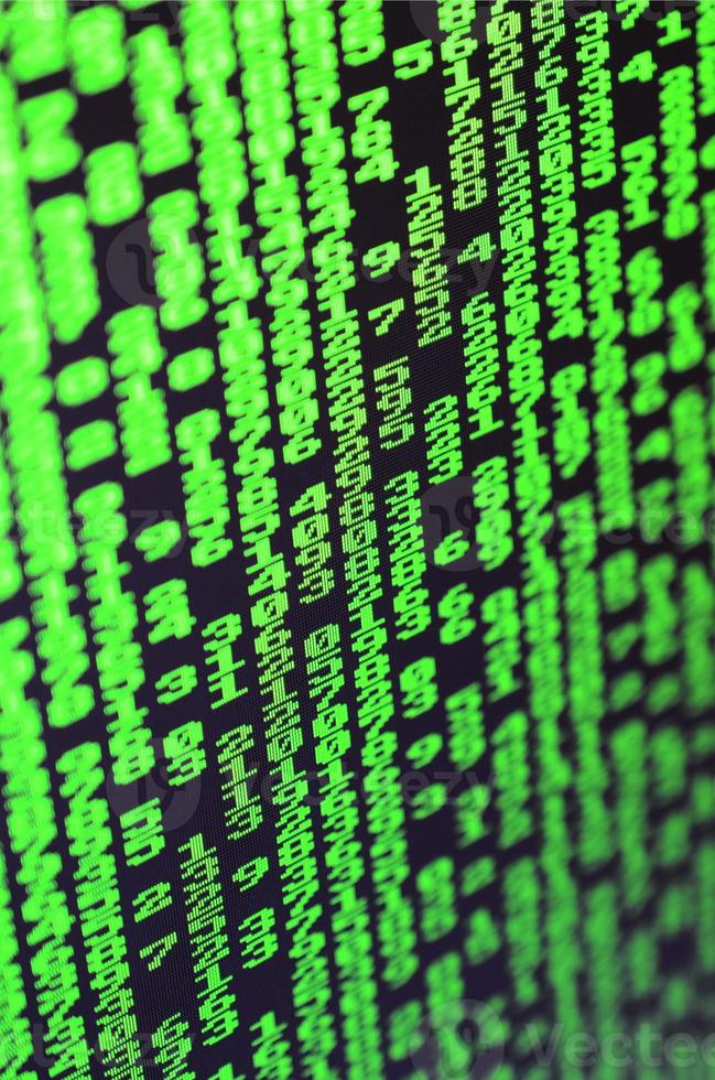Macro of password selection on the monitor of the office computer. The concept of hacking the protection of a personal data keeper. The stream of supposed digital passwords of four and five digits Pro Photo