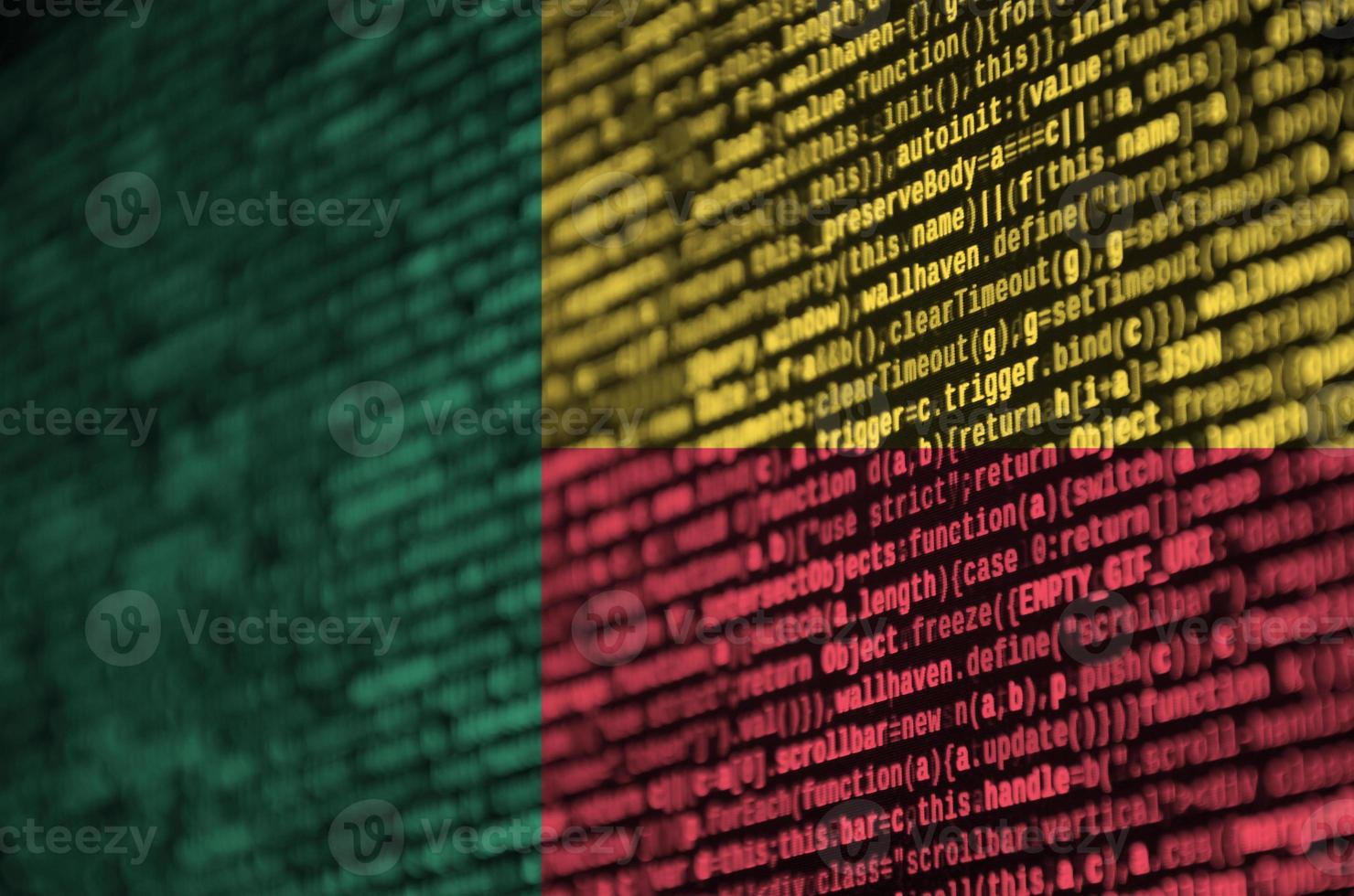 Benin flag is depicted on the screen with the program code. The concept of modern technology and site development Pro Photo