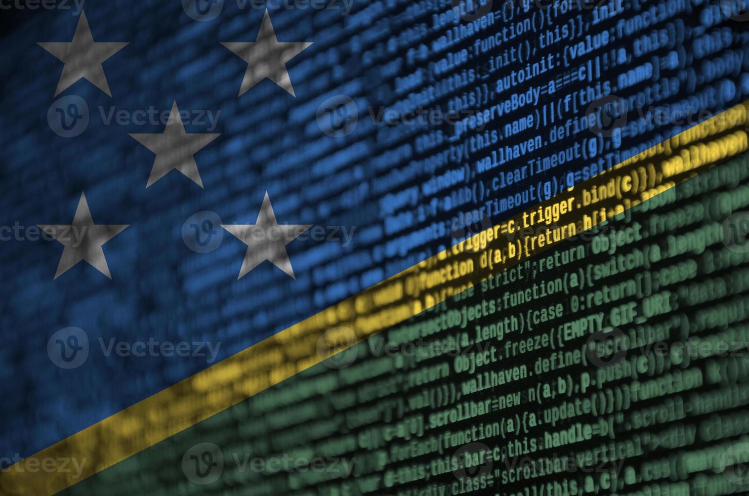 Solomon Islands flag is depicted on the screen with the program code. The concept of modern technology and site development Pro Photo