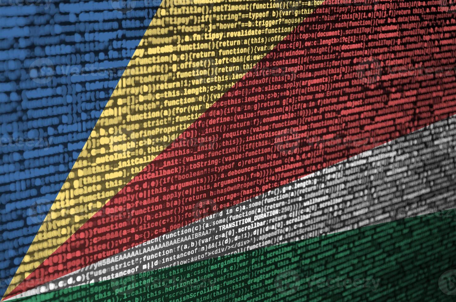 Seychelles flag is depicted on the screen with the program code. The concept of modern technology and site development Pro Photo