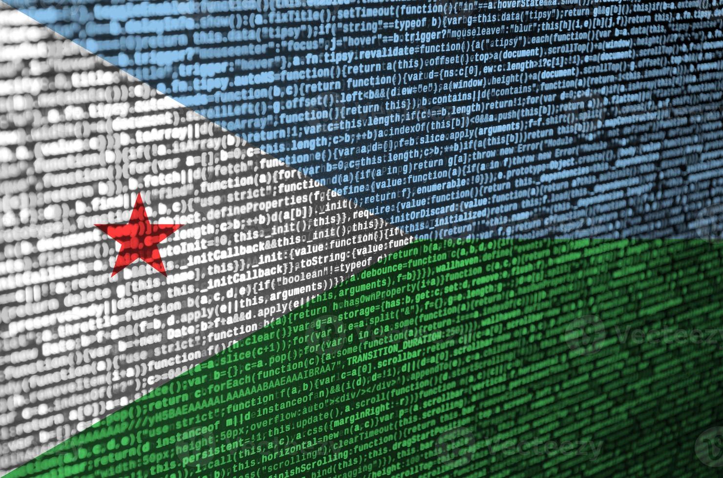 Djibouti flag is depicted on the screen with the program code. The concept of modern technology and site development Pro Photo