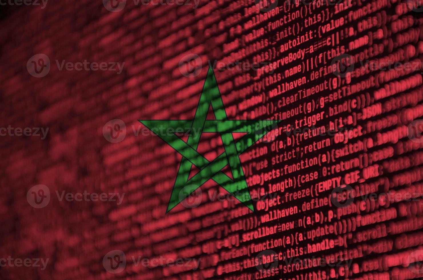 Morocco flag is depicted on the screen with the program code. The concept of modern technology and site development Pro Photo