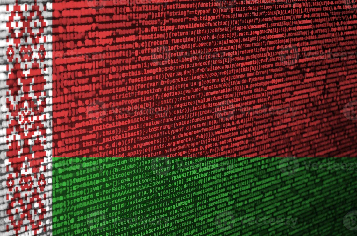Belarus flag is depicted on the screen with the program code. The concept of modern technology and site development Pro Photo