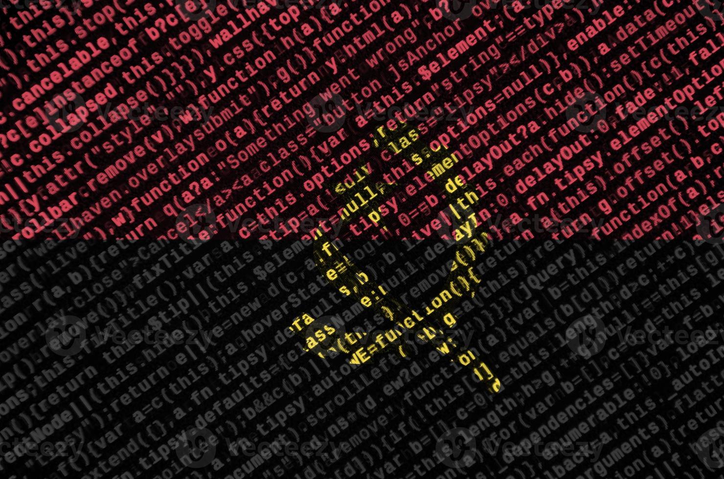 Angola flag is depicted on the screen with the program code. The concept of modern technology and site development Pro Photo