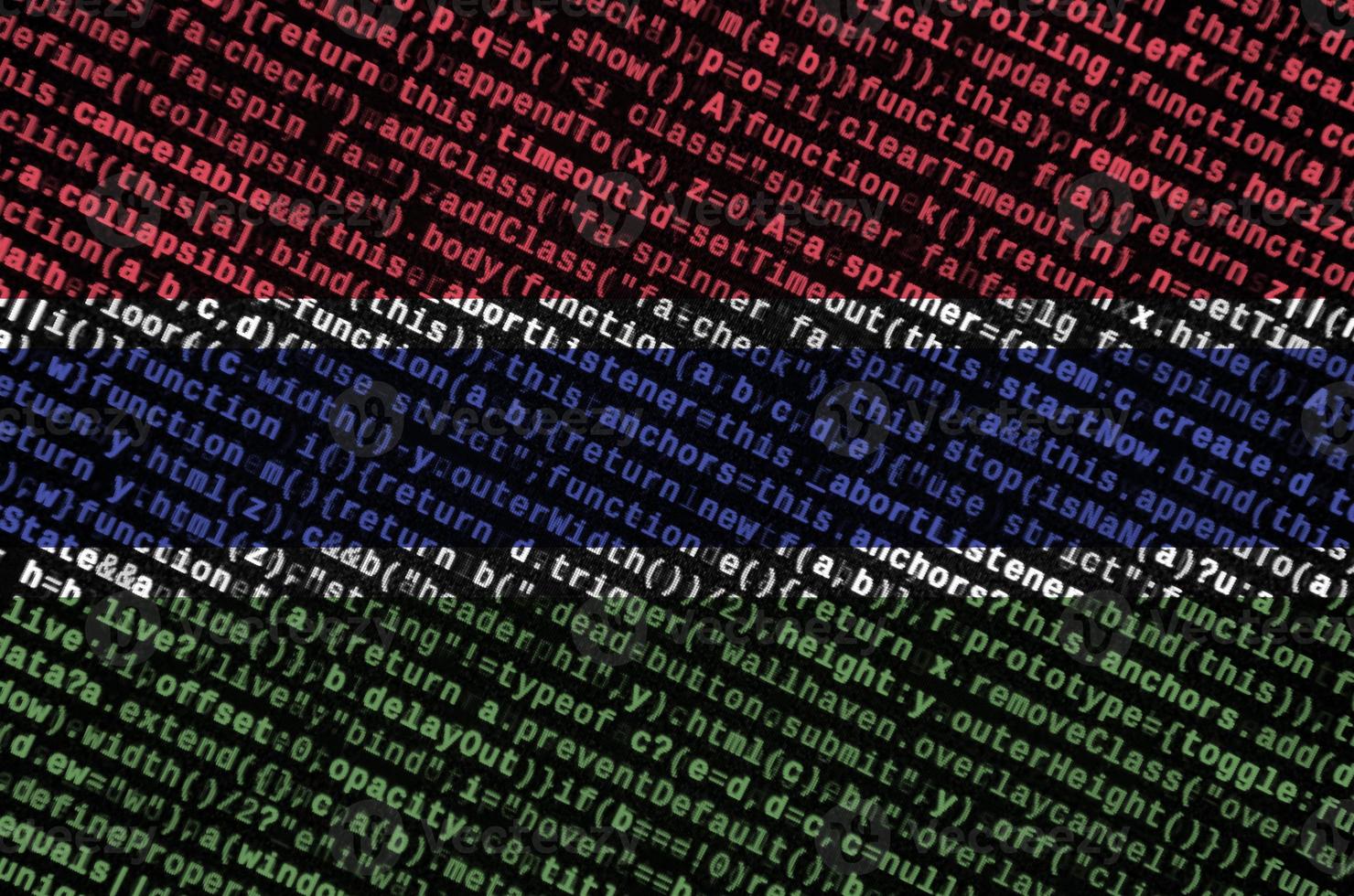 Gambia flag is depicted on the screen with the program code. The concept of modern technology and site development Pro Photo