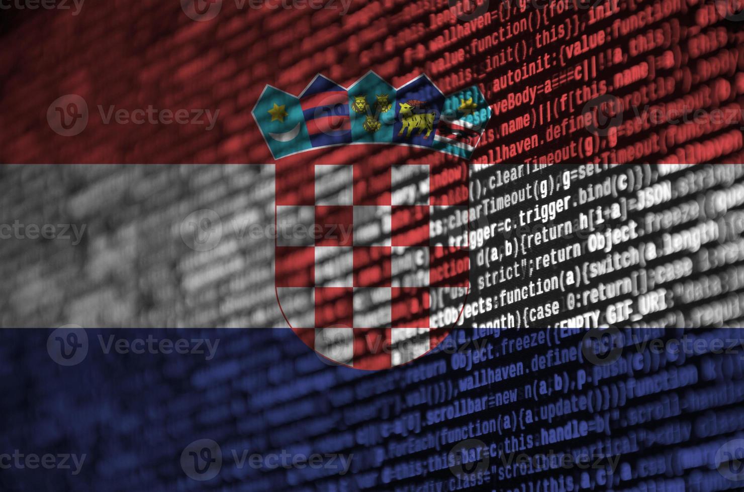 Croatia flag is depicted on the screen with the program code. The concept of modern technology and site development Pro Photo