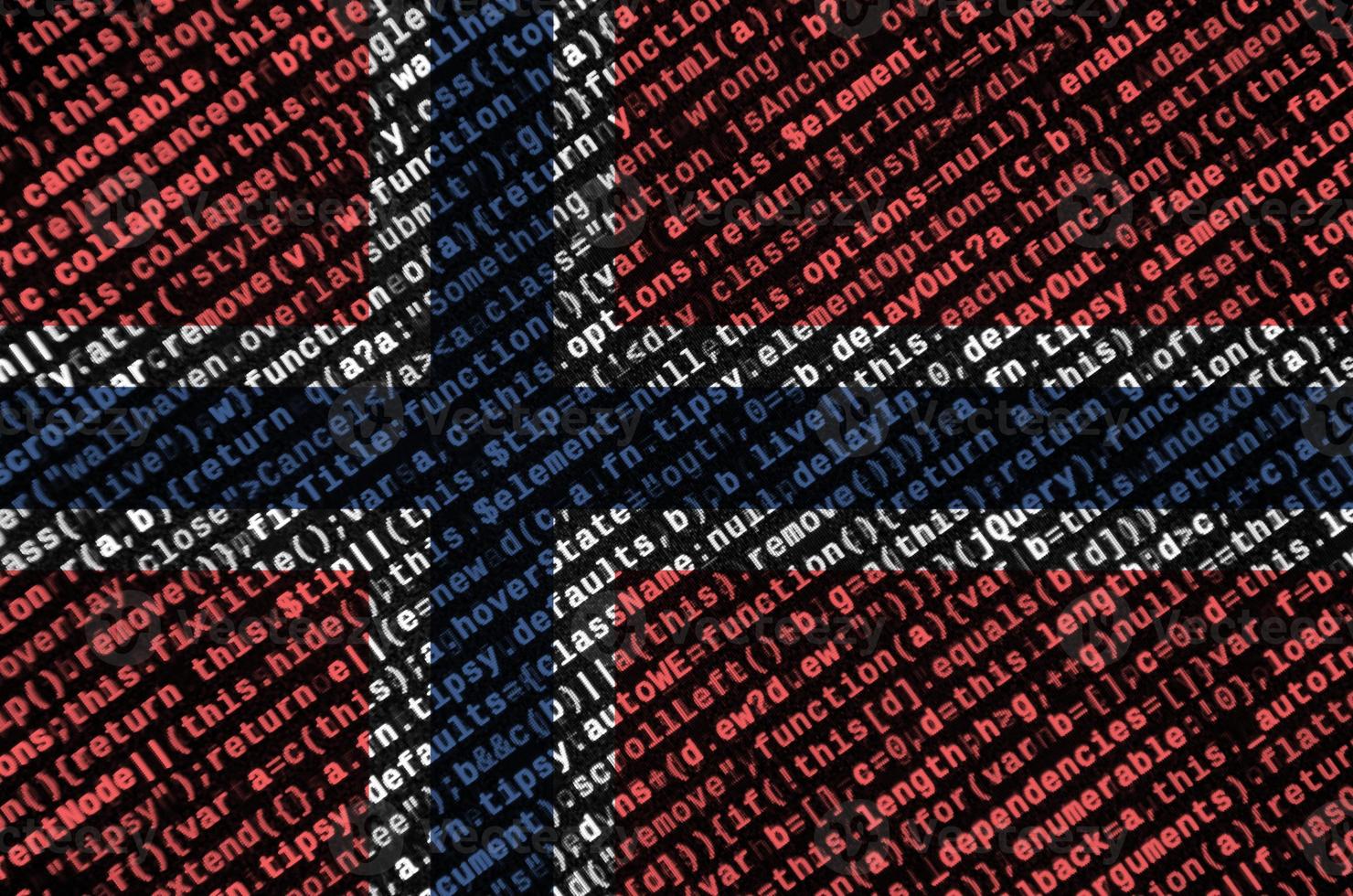 Norway flag is depicted on the screen with the program code. The concept of modern technology and site development Pro Photo