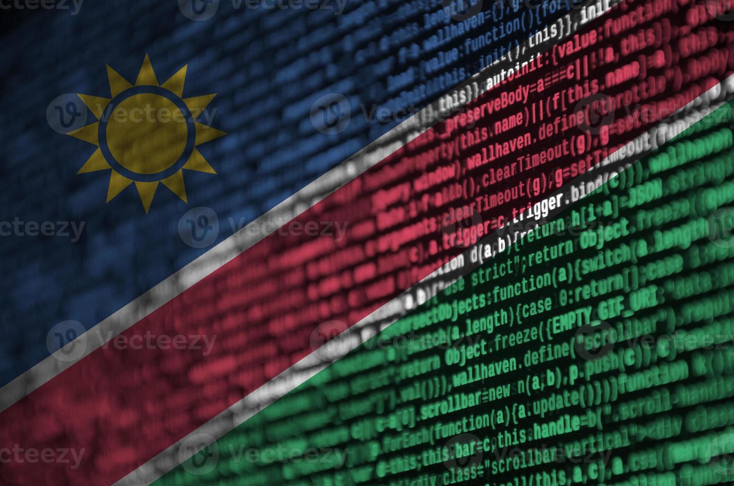 Namibia flag is depicted on the screen with the program code. The concept of modern technology and site development Pro Photo