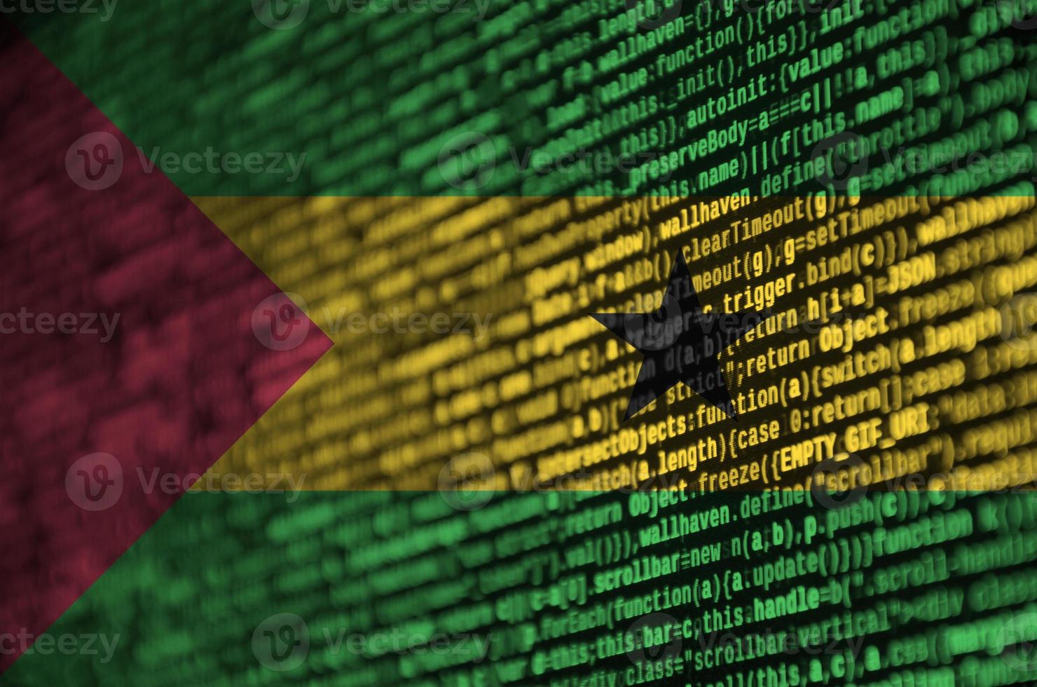 Sao Tome and Principe flag is depicted on the screen with the program code. The concept of modern technology and site development Pro Photo