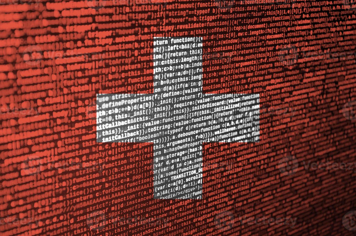 Switzerland flag is depicted on the screen with the program code. The concept of modern technology and site development Pro Photo