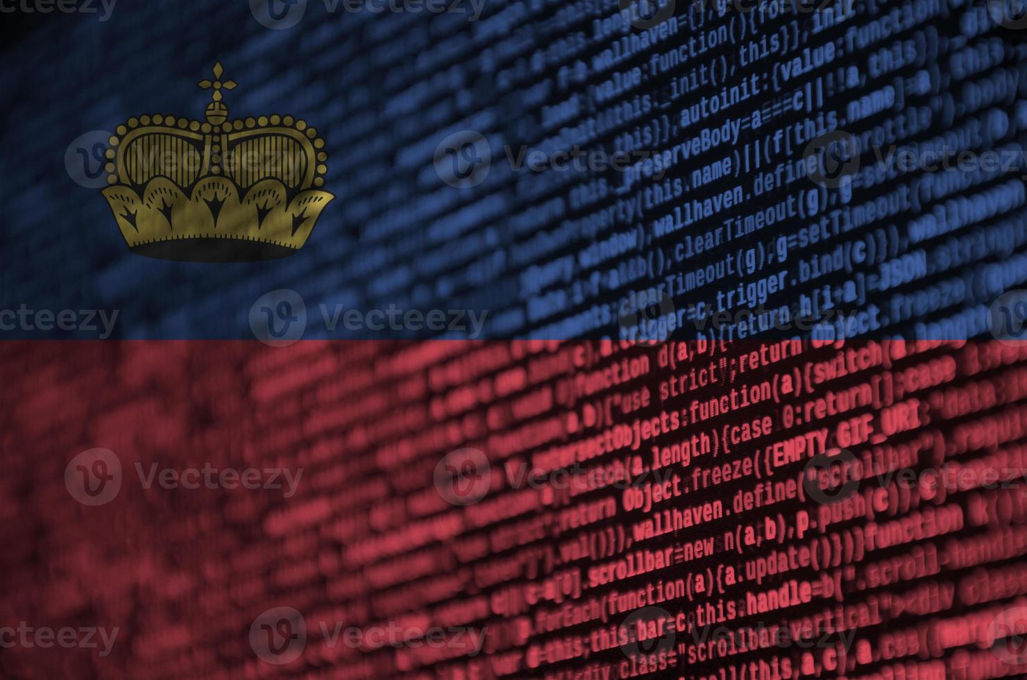 Liechtenstein flag is depicted on the screen with the program code. The concept of modern technology and site development Pro Photo