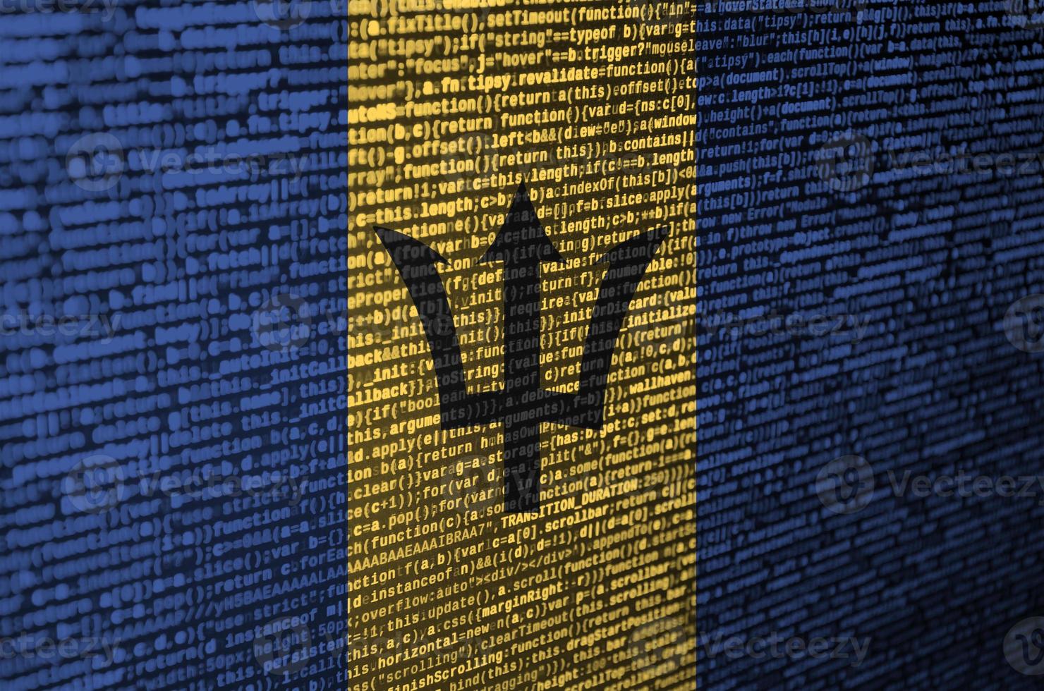 Barbados flag is depicted on the screen with the program code. The concept of modern technology and site development Pro Photo