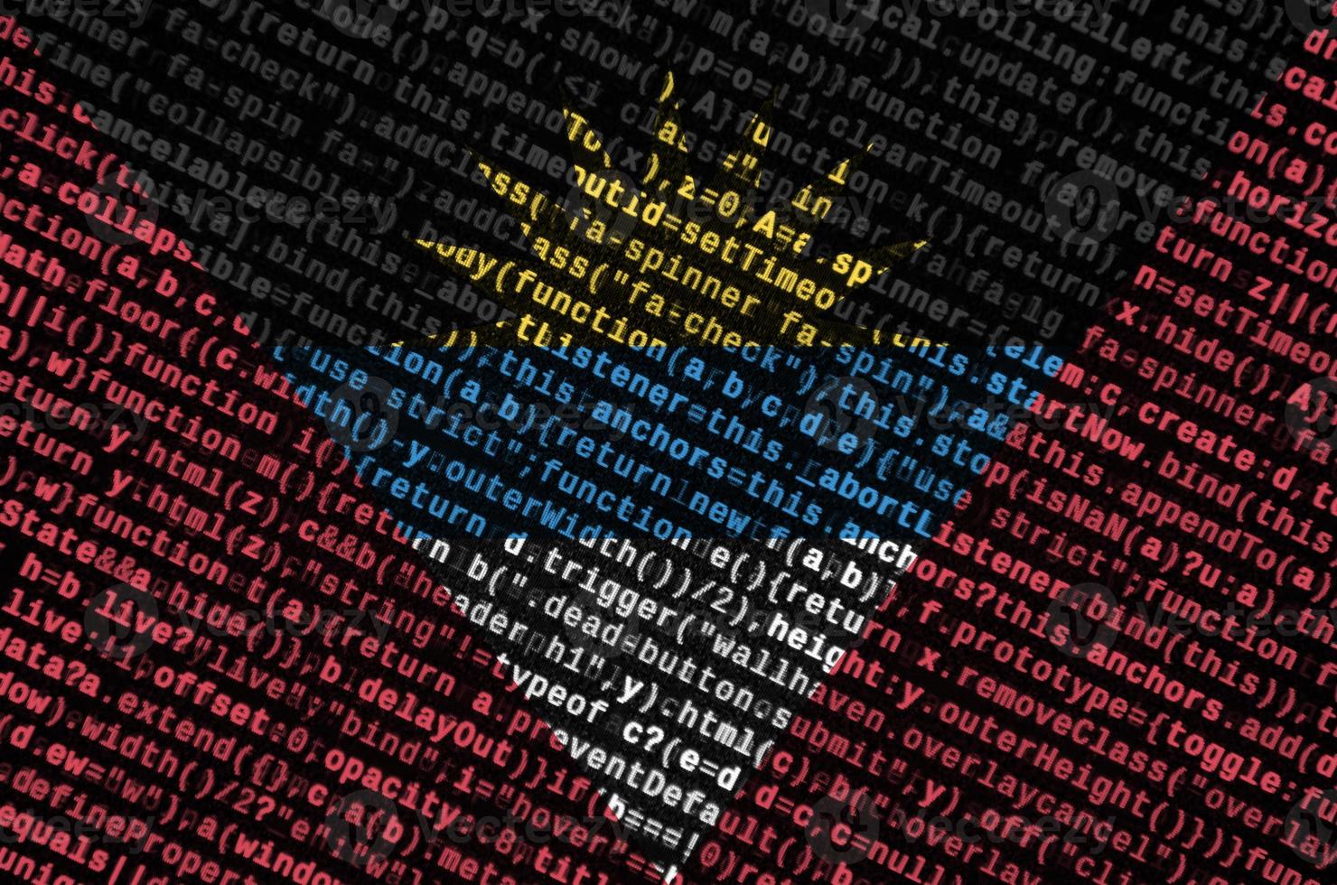 Antigua and Barbuda flag is depicted on the screen with the program code. The concept of modern technology and site development Pro Photo