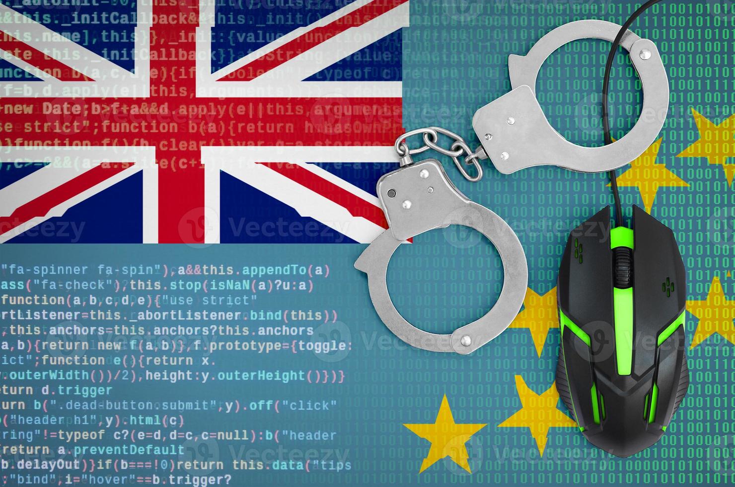 Tuvalu flag and handcuffed computer mouse. Combating computer crime, hackers and piracy Pro Photo