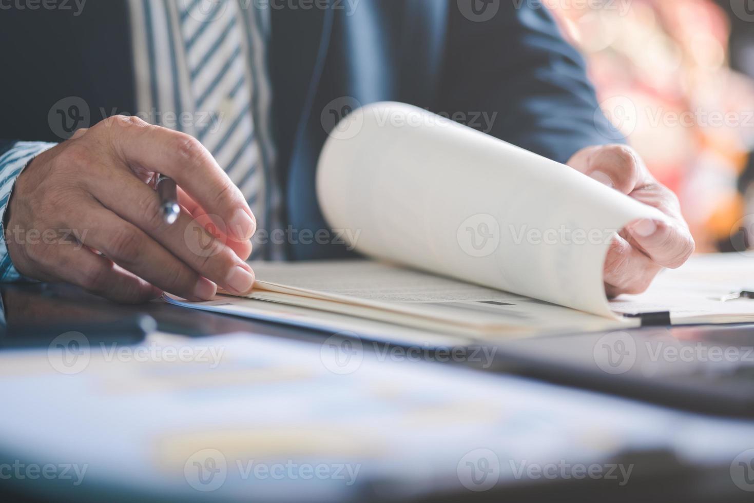 Businessman Audit documents, quality assessment management With a checklist, business document evaluation process, market data report analysis and consulting, plan review process. Pro Photo