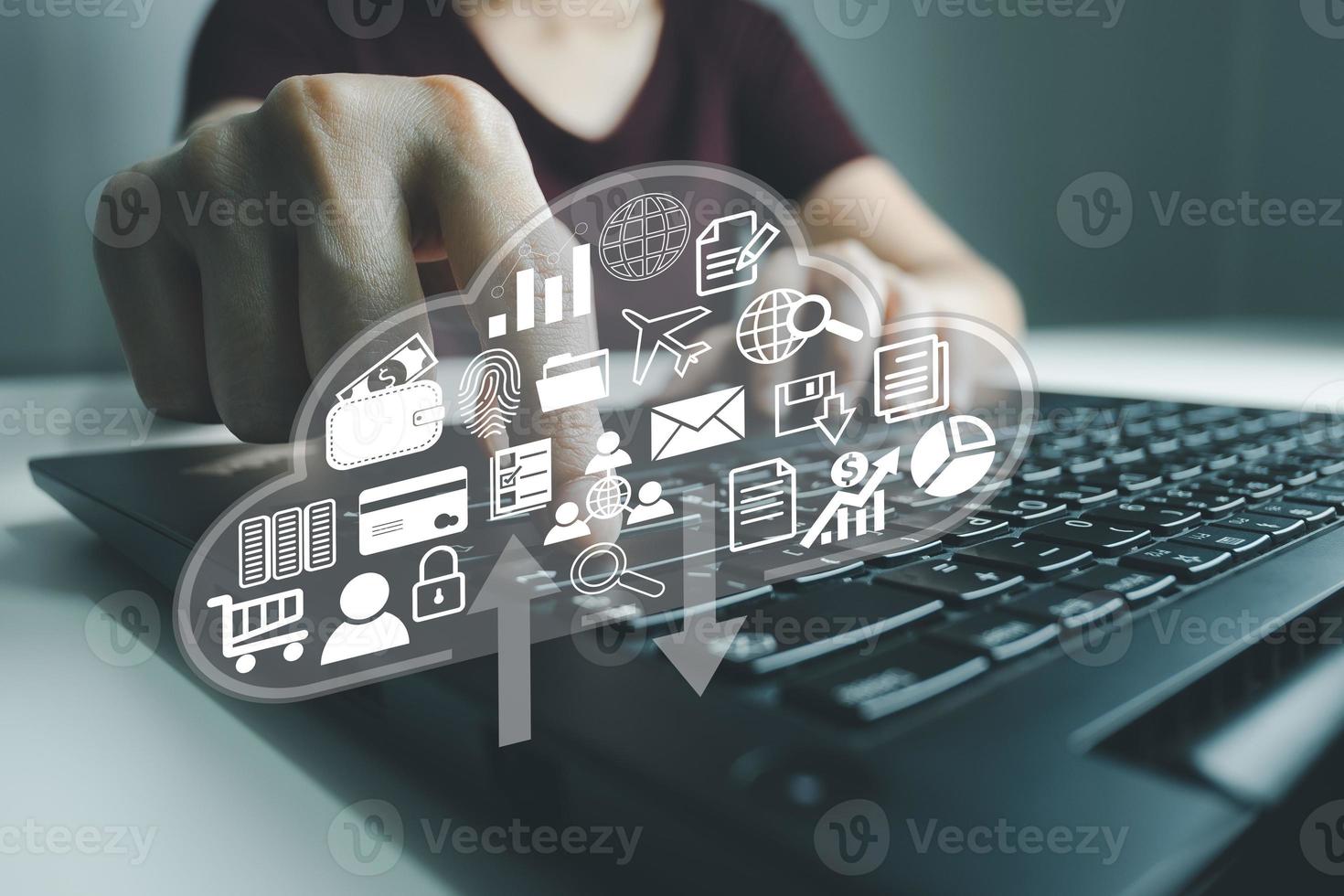 Concept global data connection with internet technology, users are using labtop for online transactions by internet technology, big data, database management, cloud computing, cashless society. Pro Photo