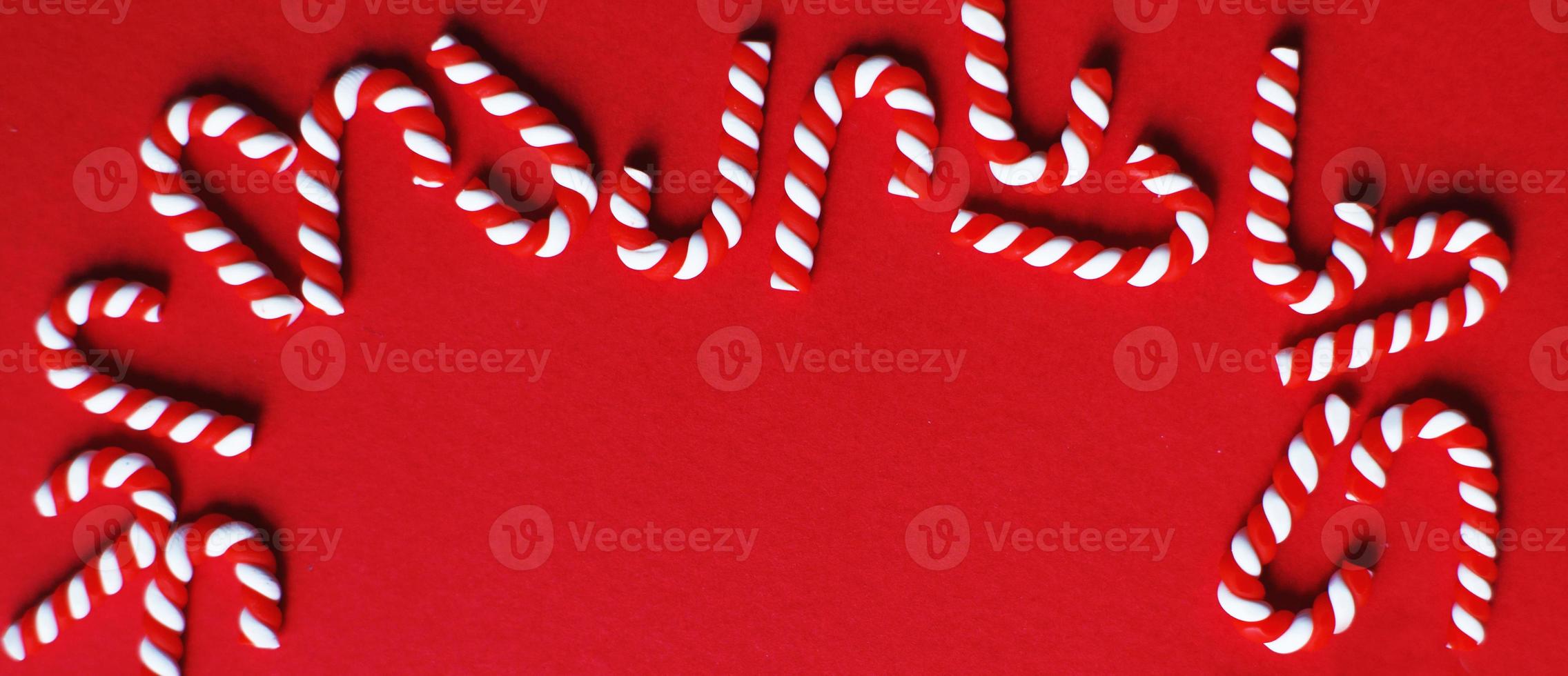 Christmas composition with frame of candy canes on red background. Copy space for text. banner Pro Photo