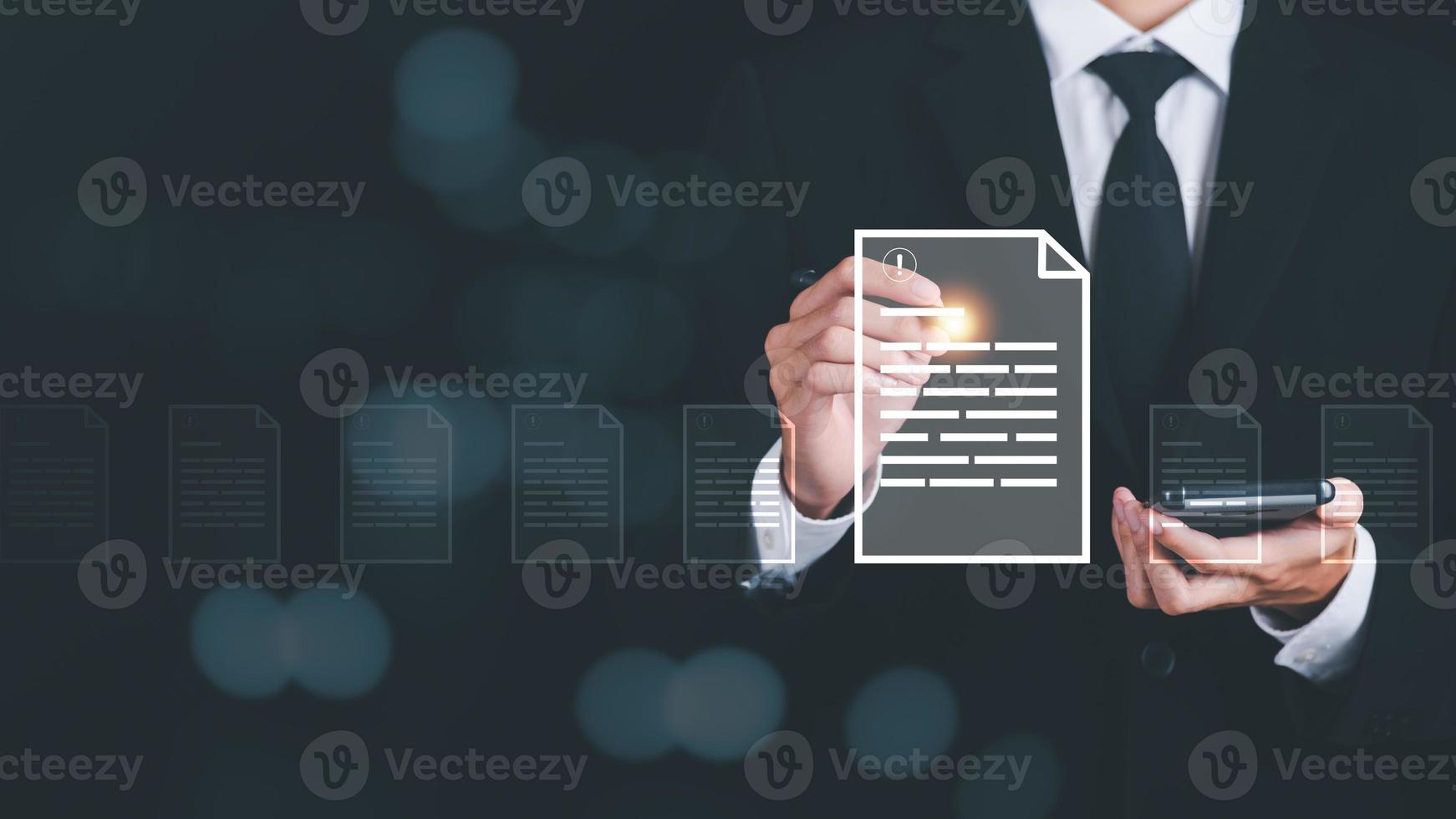 Businessman checking the steps through a virtual online document with a list of checkboxes Concepts of practices and policies, company articles of association Terms and Conditions Pro Photo