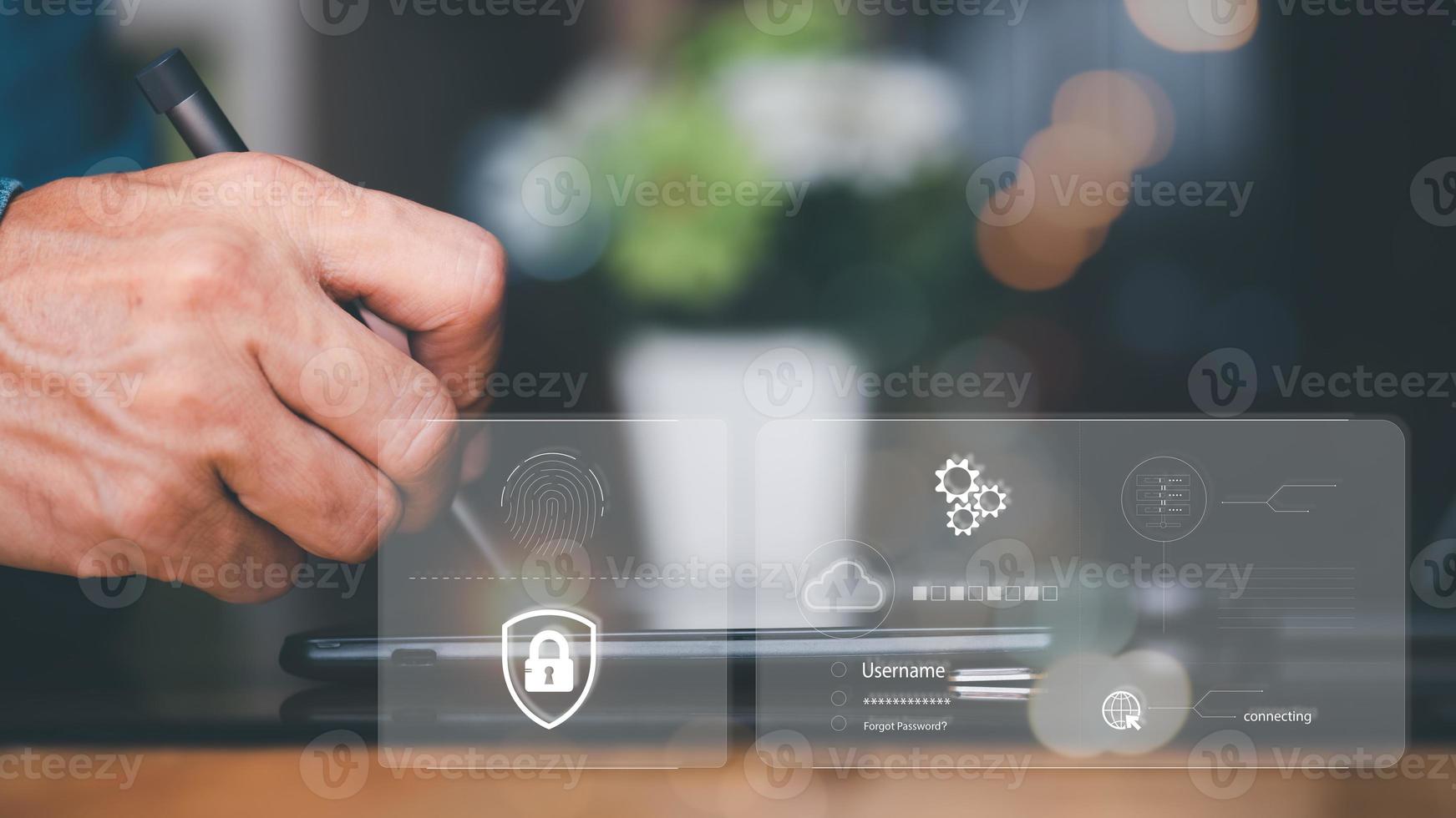 online security protection, cyberspace technology. authenticate To log in, verify your privacy. with password, key icon Demonstrates cyber security that have been properly approved Pro Photo